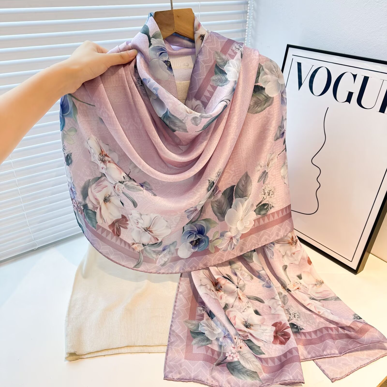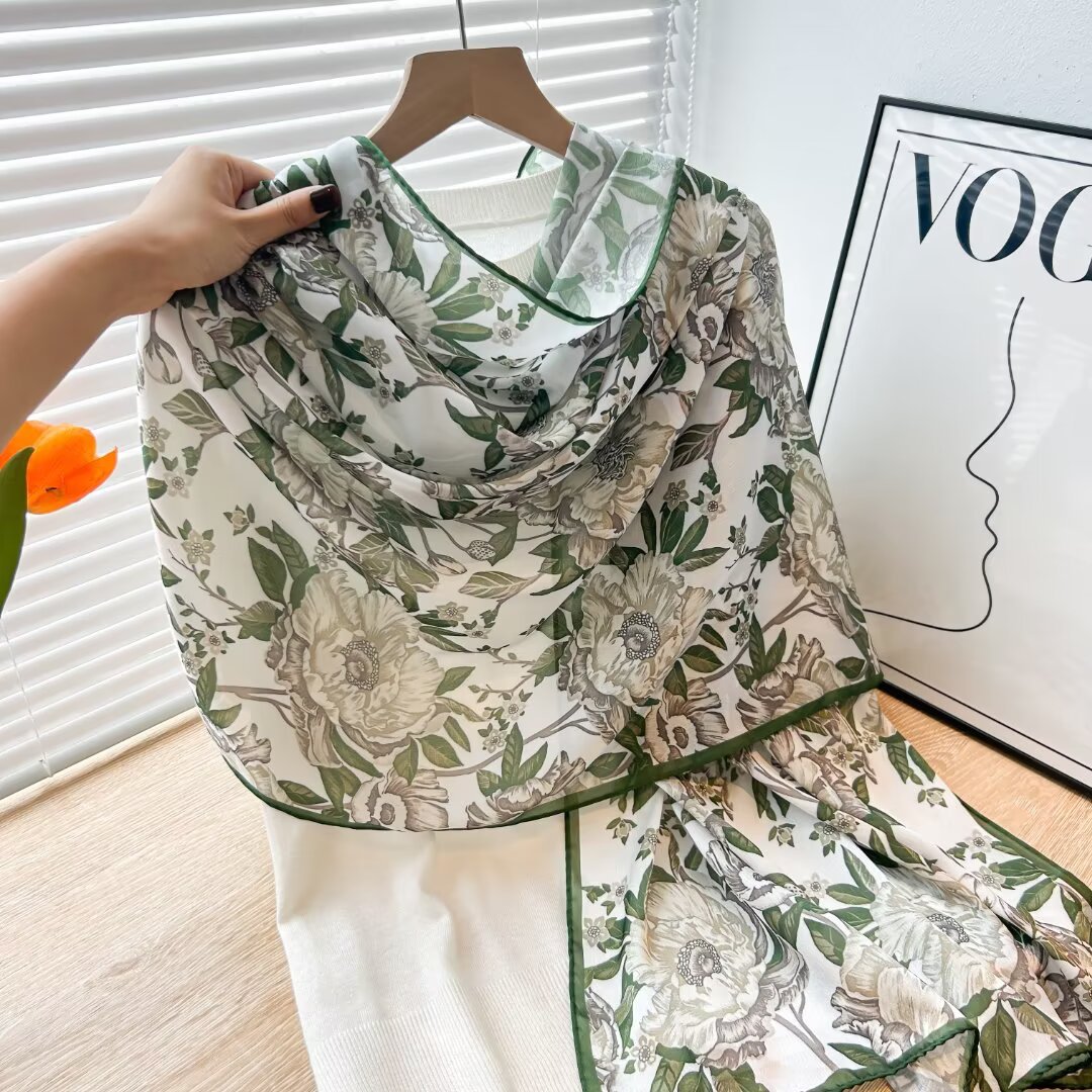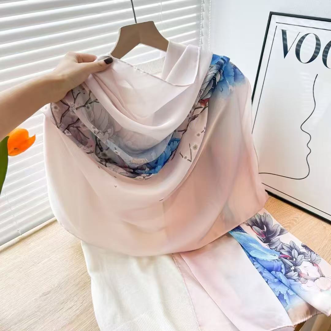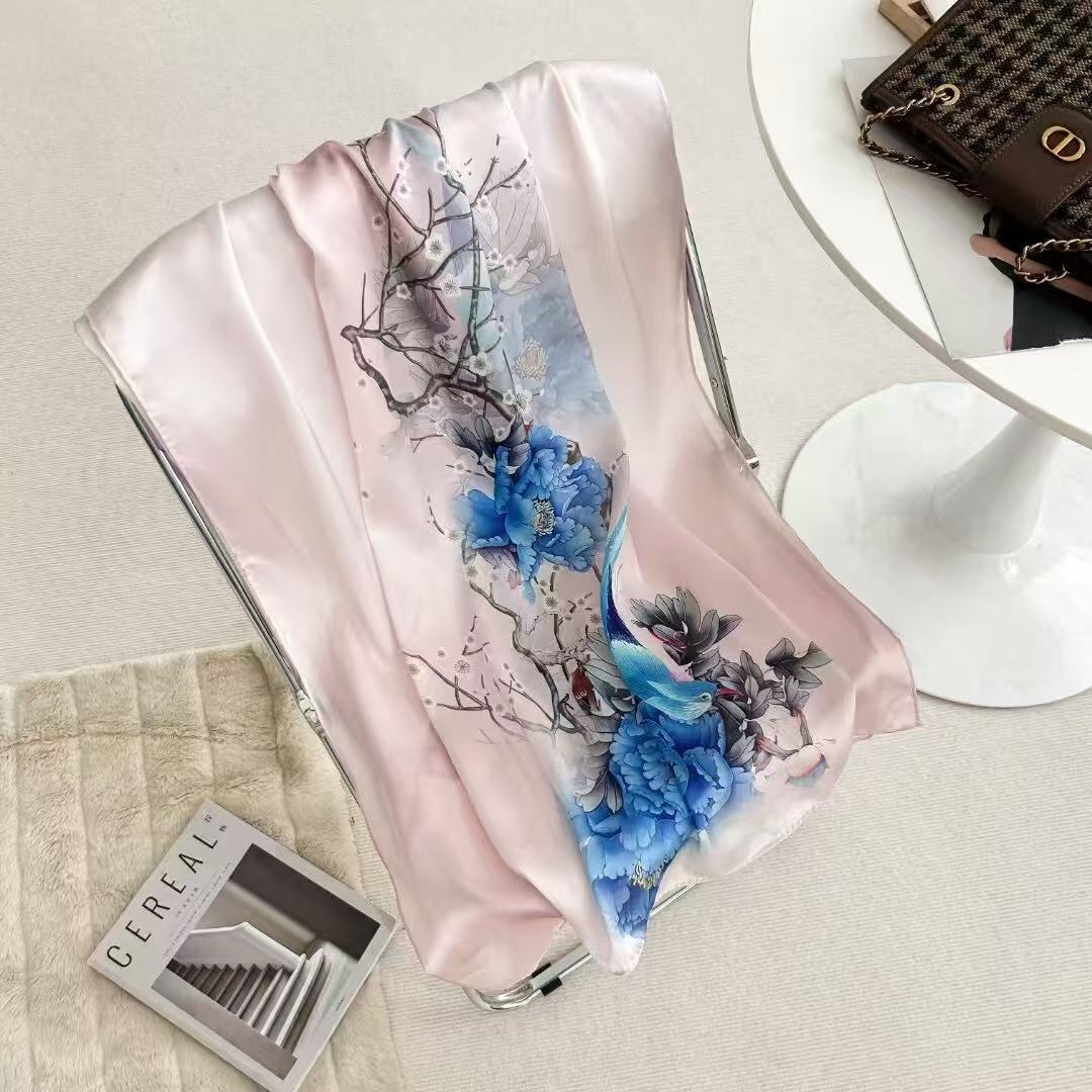 여성용 고급 실크 스카프, 멀버리 실크 프린트 숄 스카프, 선물용 실크 스카프, 선스크린 실크 비치 타월
