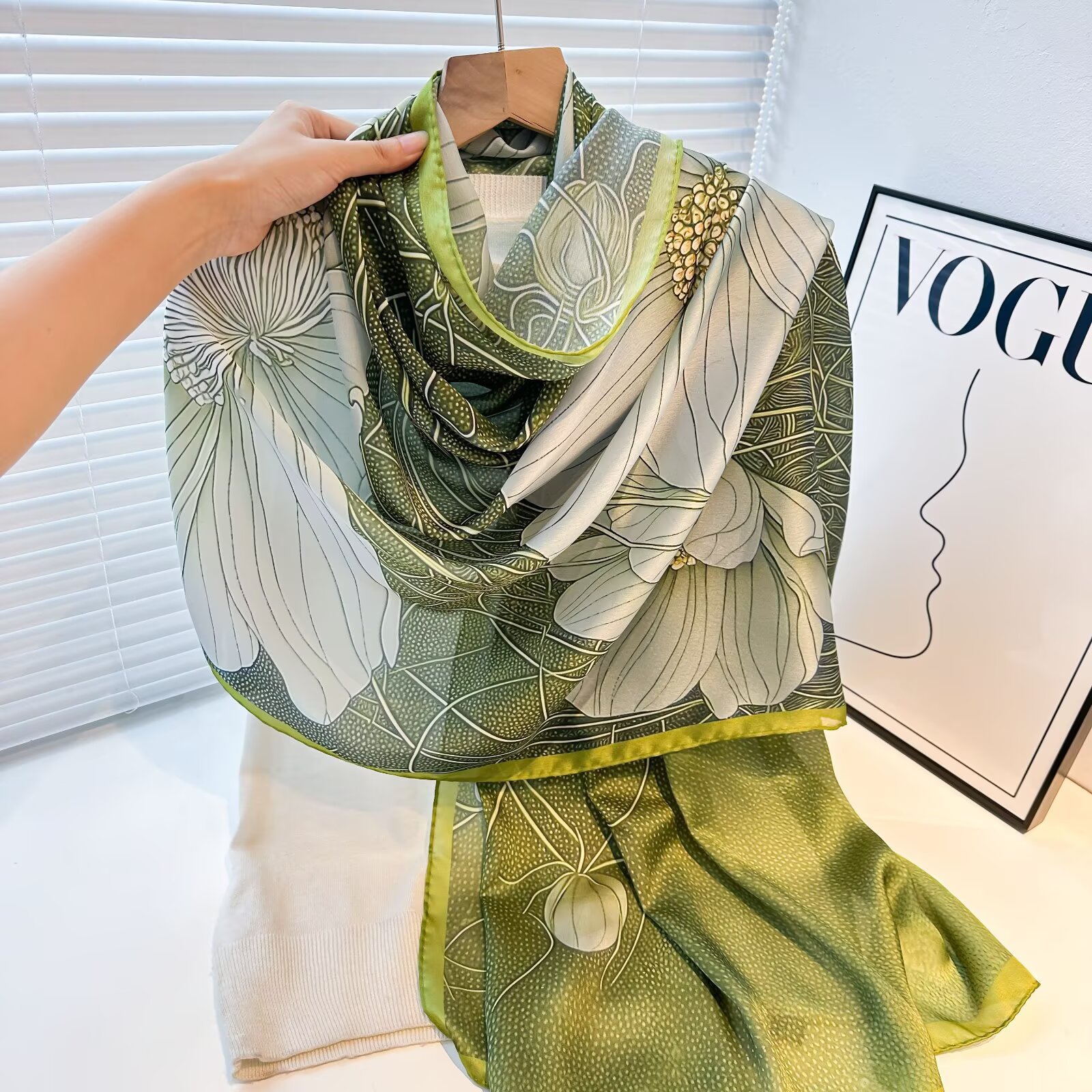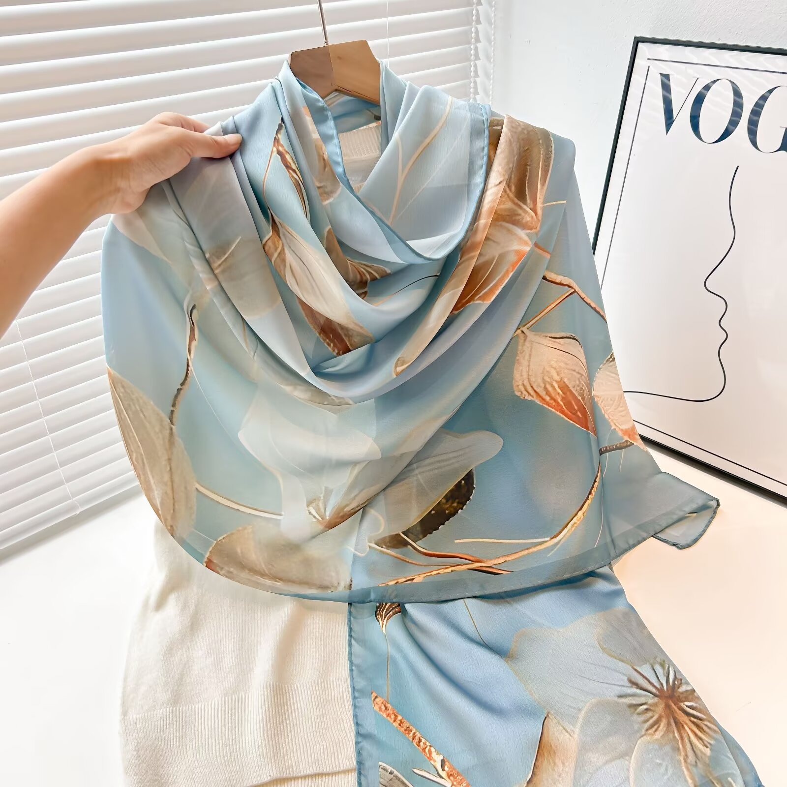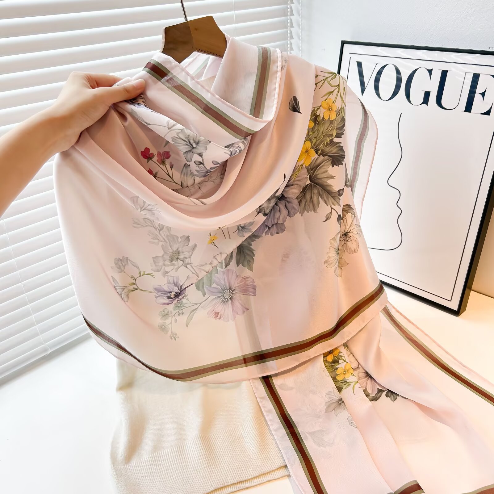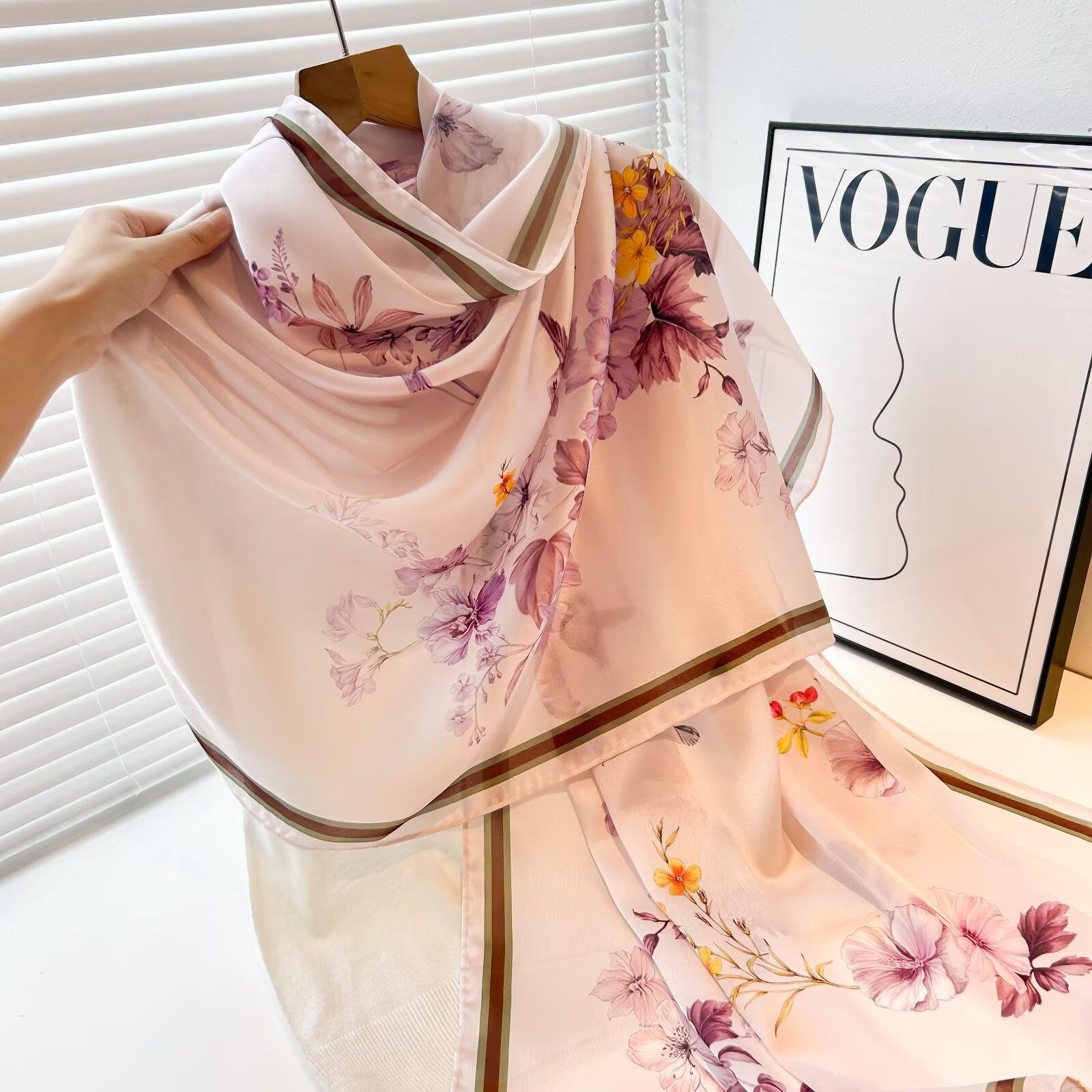 여성용 고급 실크 스카프, 멀버리 실크 프린트 숄 스카프, 선물용 실크 스카프, 선스크린 실크 비치 타월