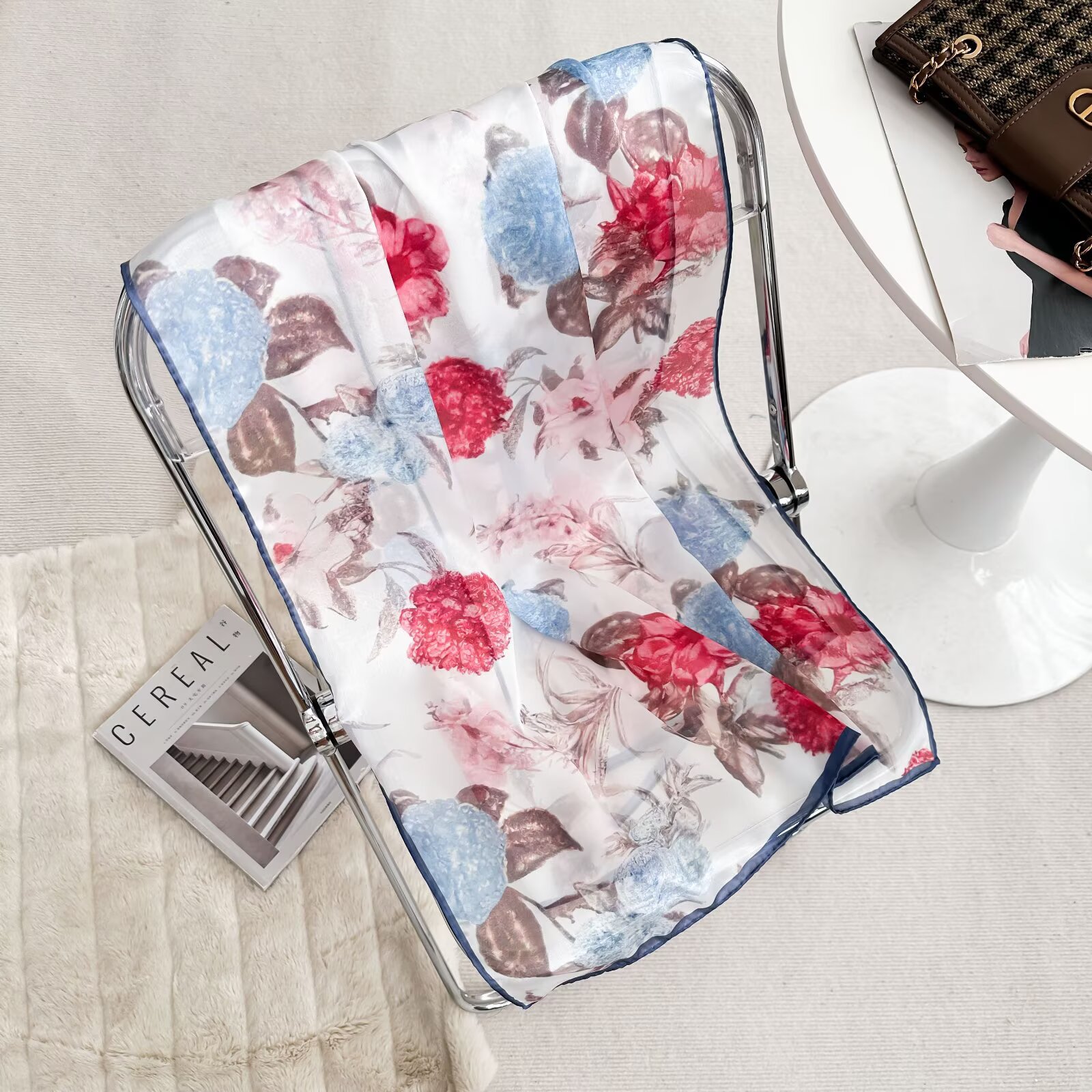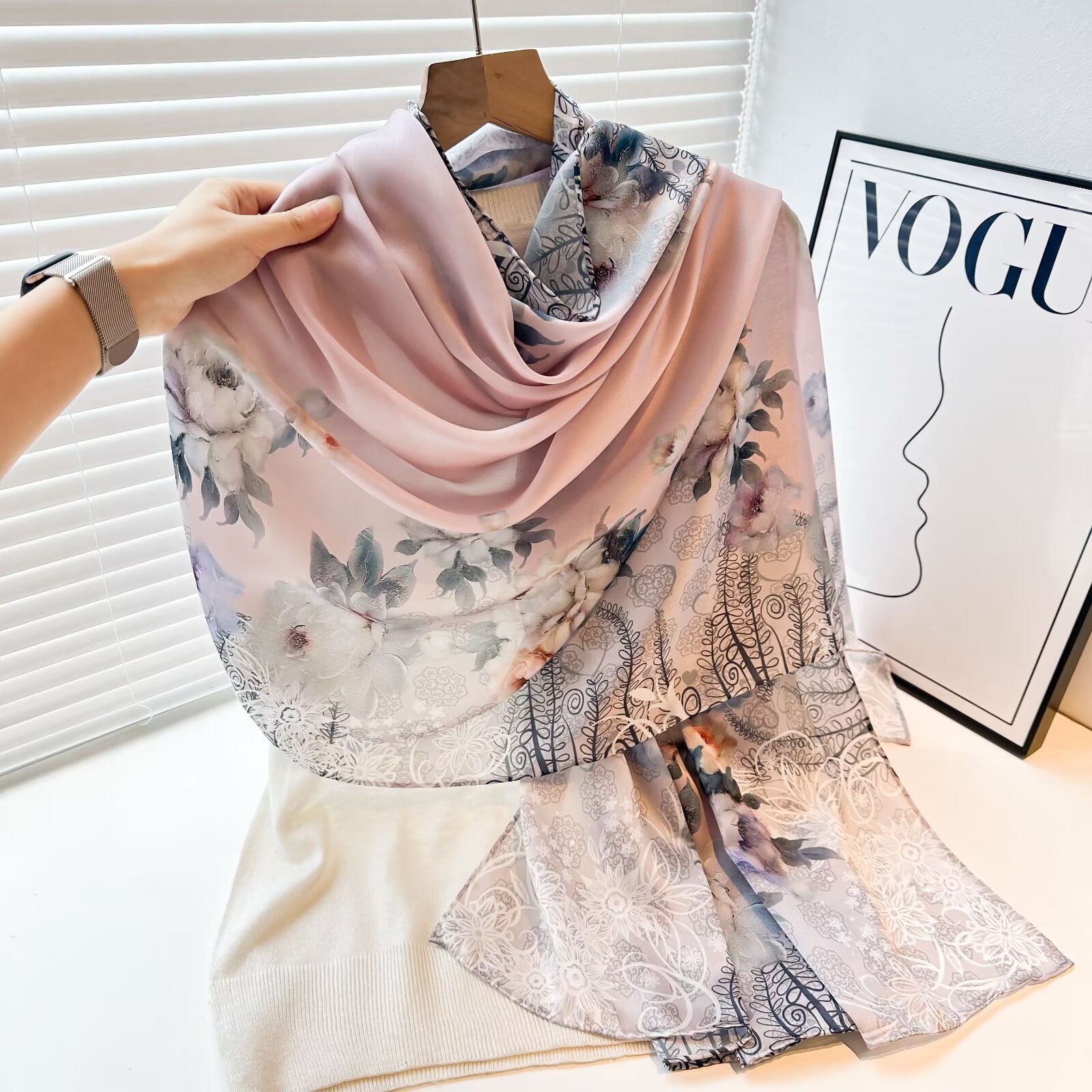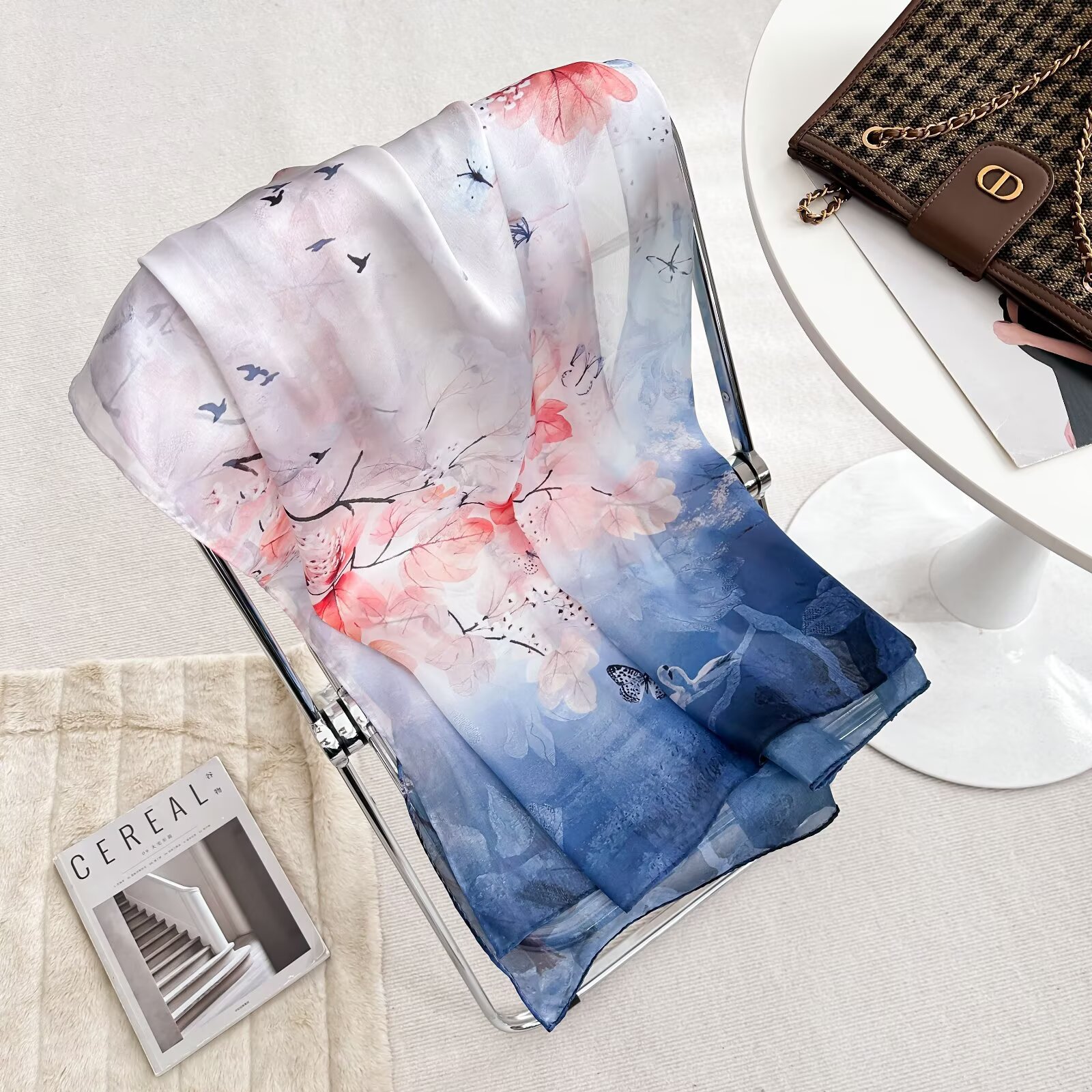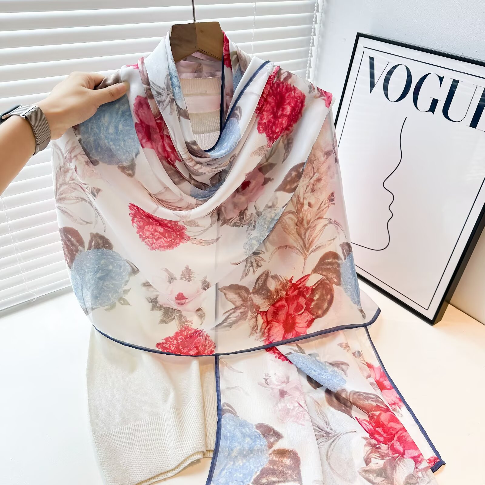 여성용 고급 실크 스카프, 멀버리 실크 프린트 숄 스카프, 선물용 실크 스카프, 선스크린 실크 비치 타월