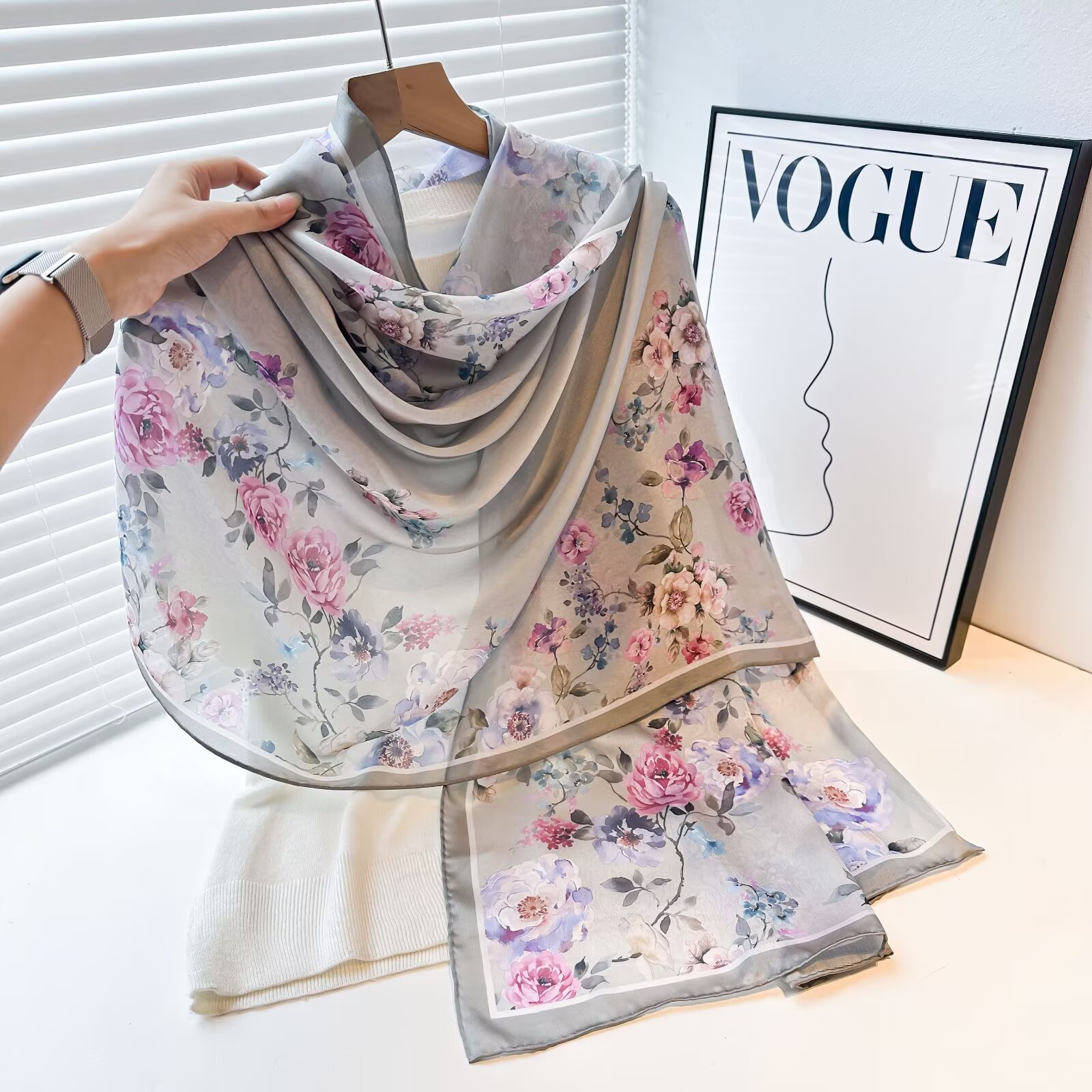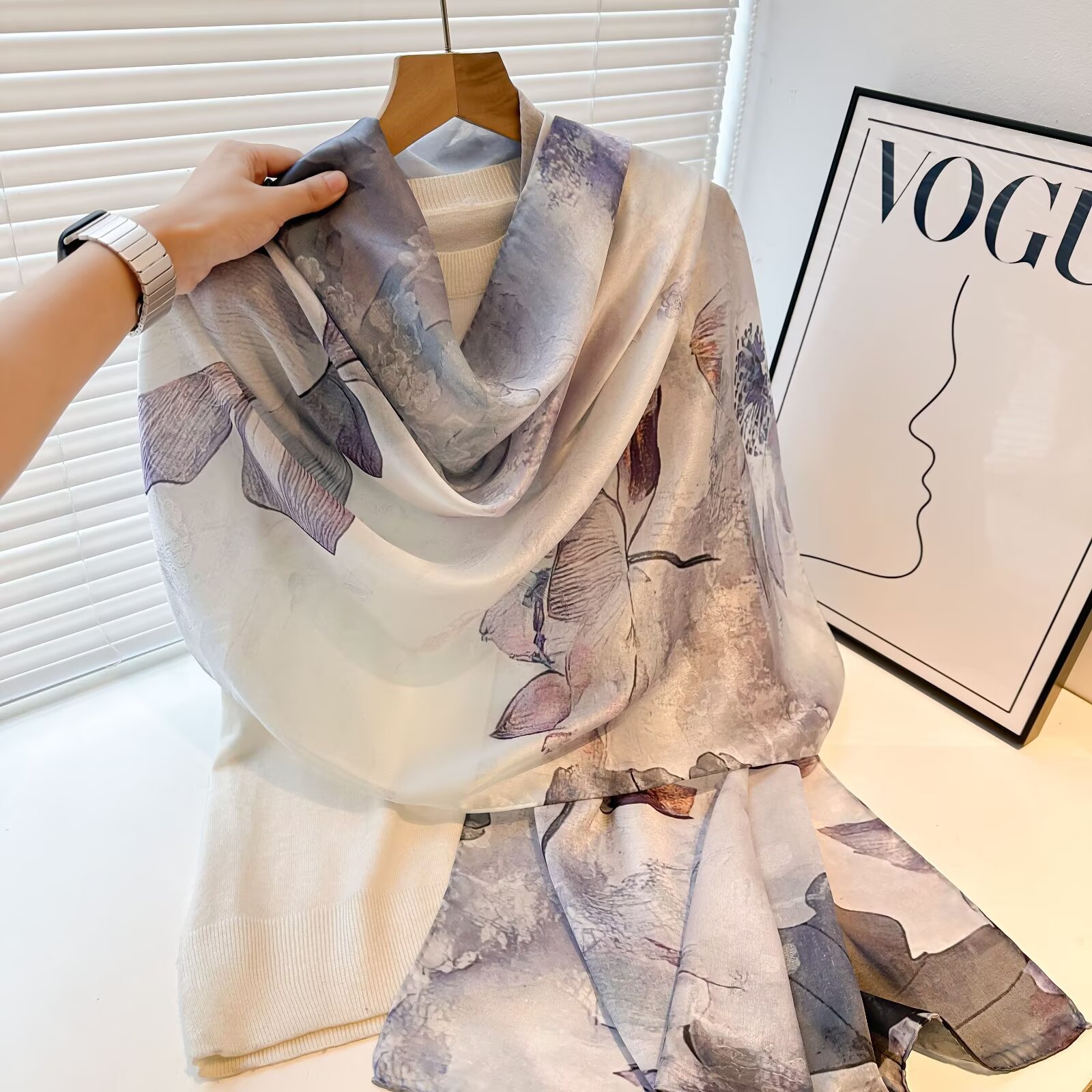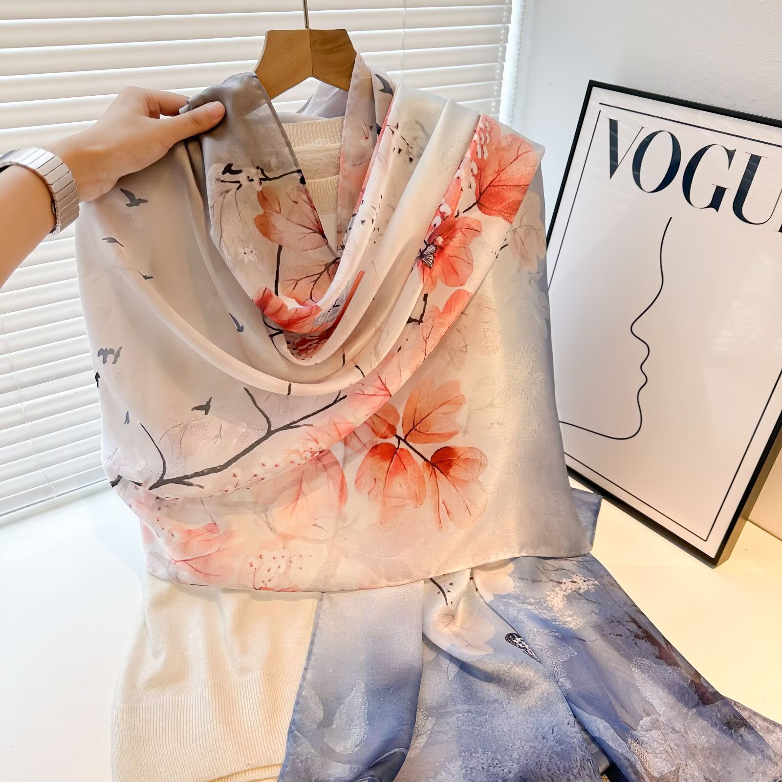 여성용 고급 실크 스카프, 멀버리 실크 프린트 숄 스카프, 선물용 실크 스카프, 선스크린 실크 비치 타월스토어 가기