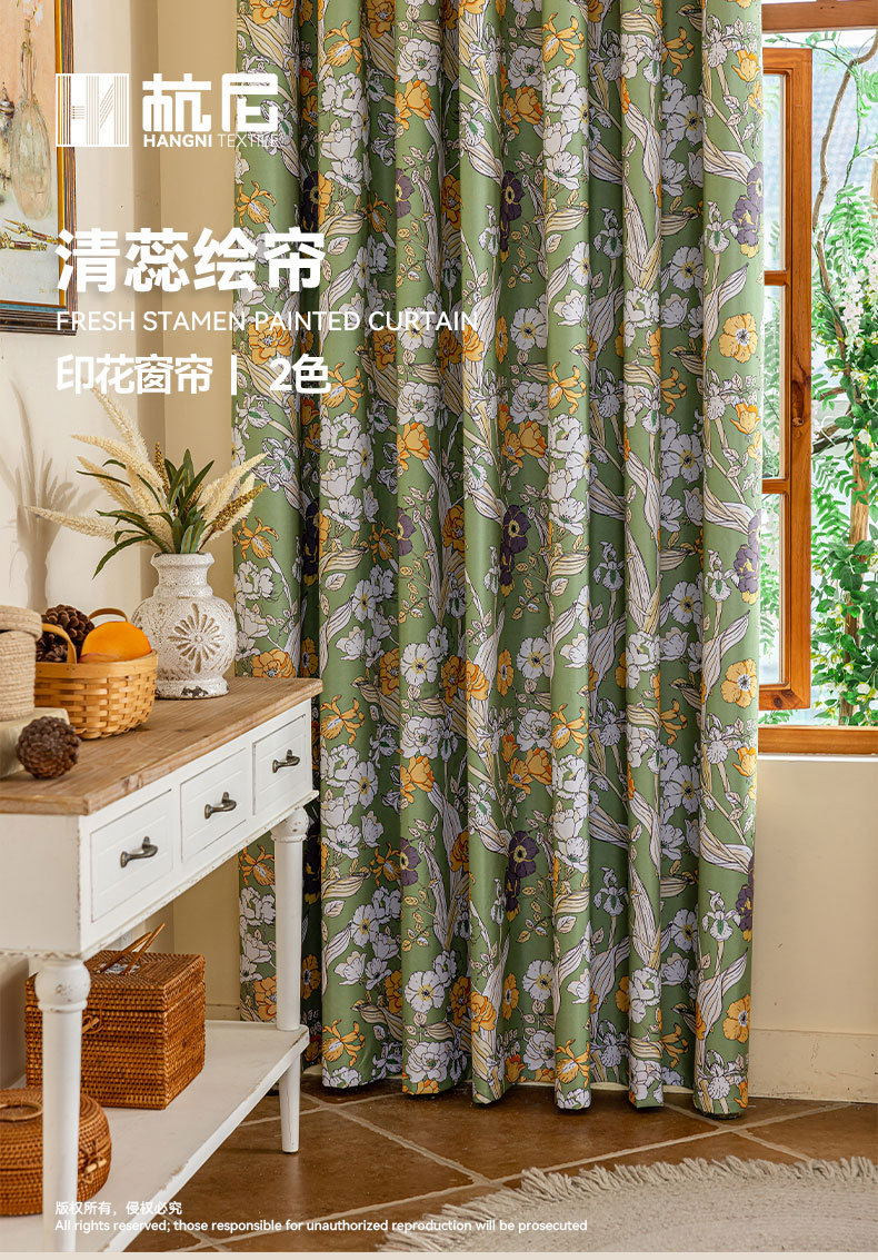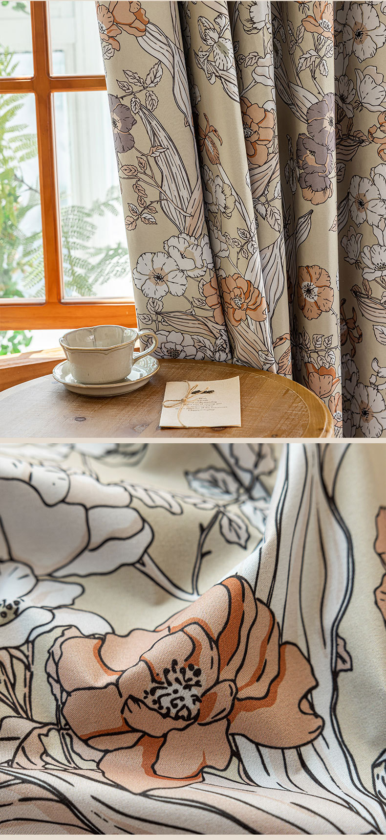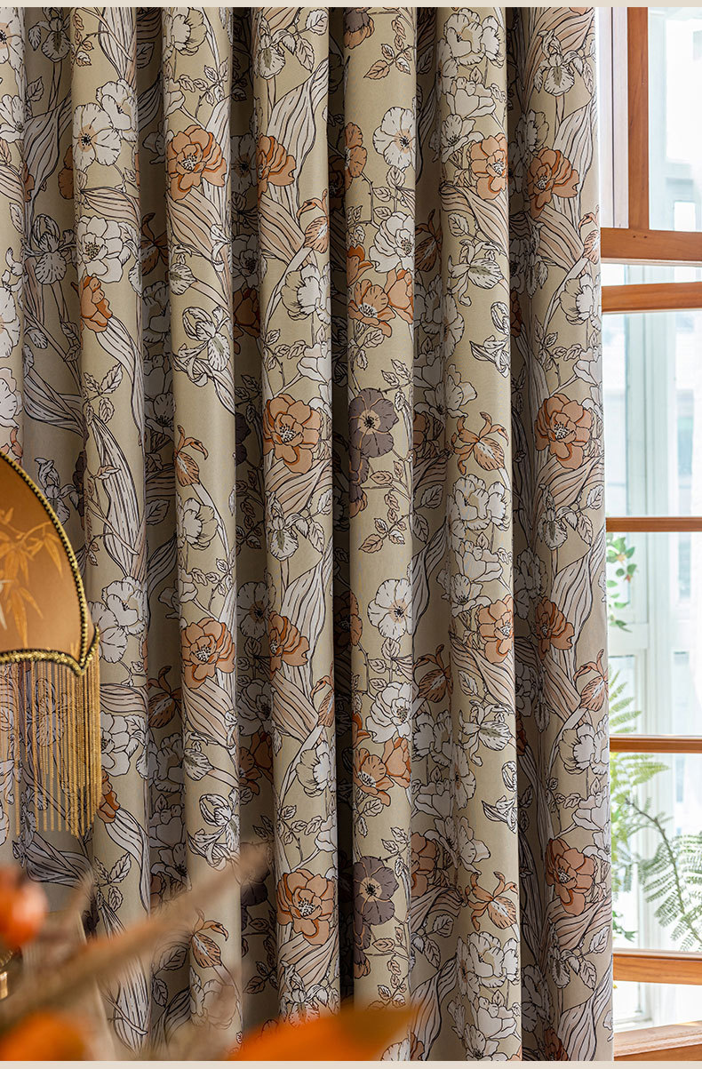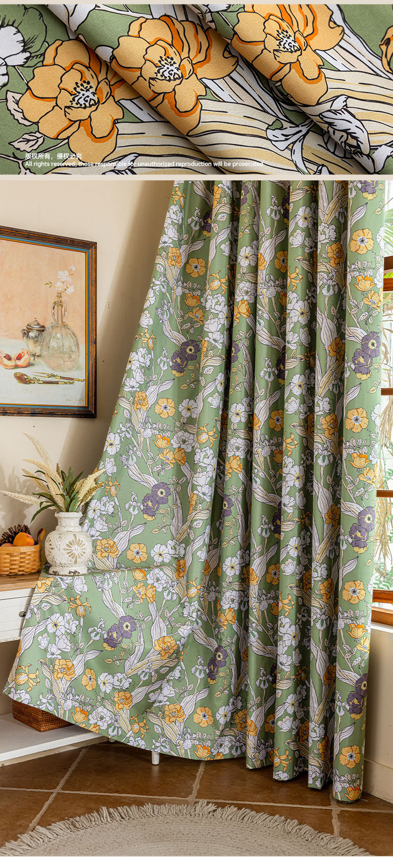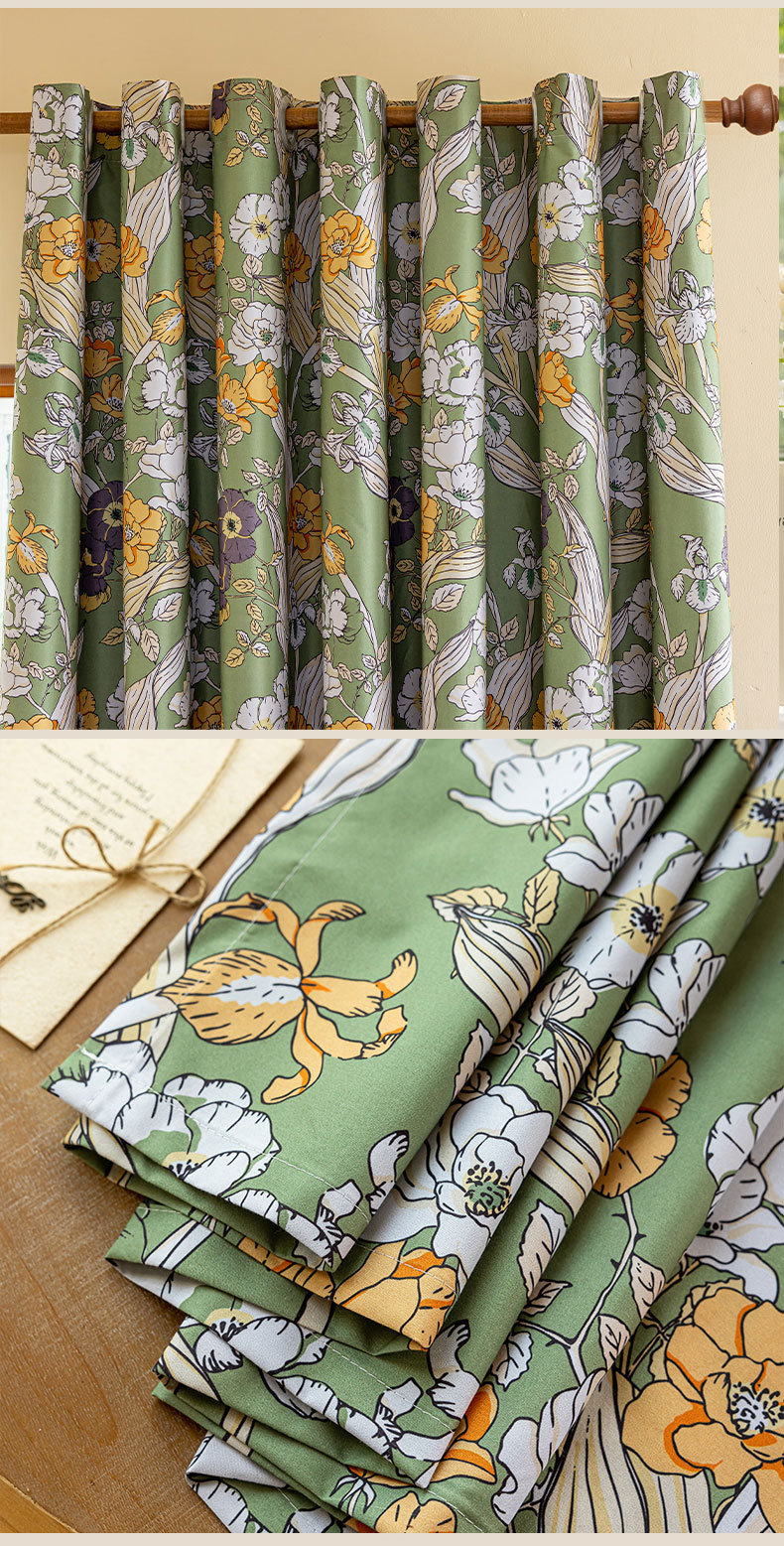 국경 간 미국 꽃 무늬 커튼, 2색 옵션, 완전 암막 완제품 커튼, 거실, 침실, 가정용 커튼스토어 가기