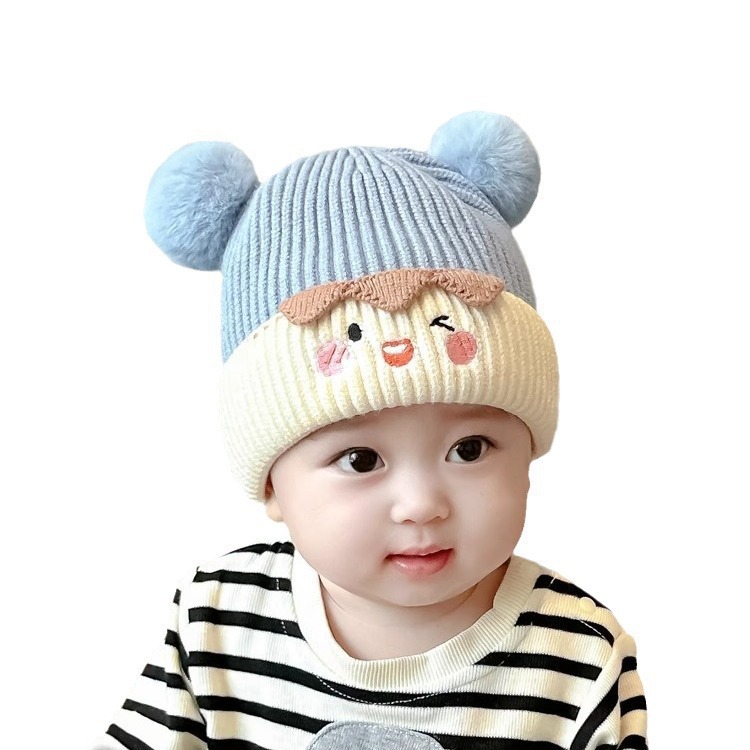 남성과 여성을 위한 매우 귀엽고 트렌디한 아기 모자, 가을과 겨울에 귀여운 모피 볼 풀오버 모자, 유아용 니트 모직 두꺼운 귀 보호