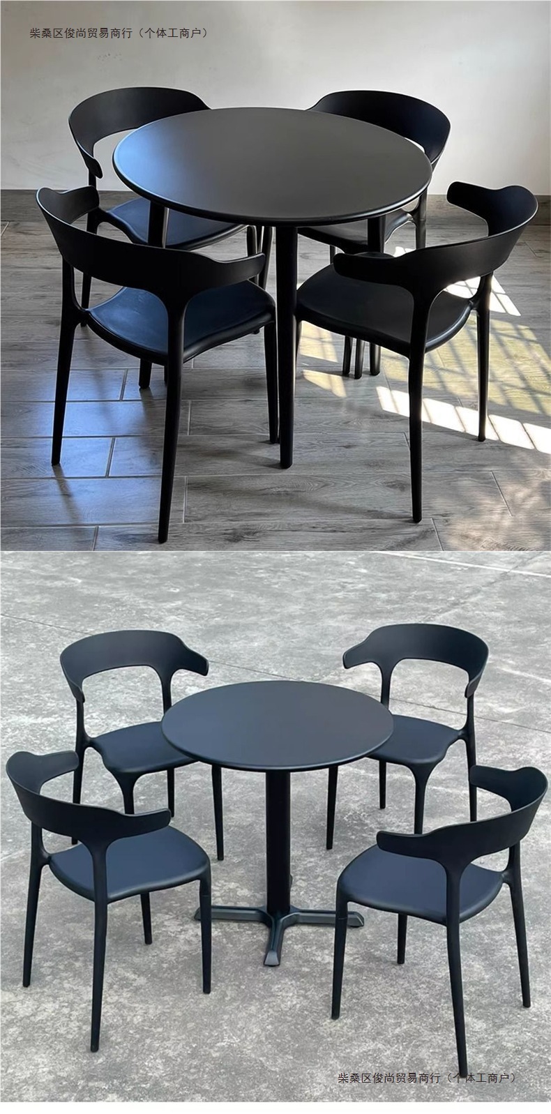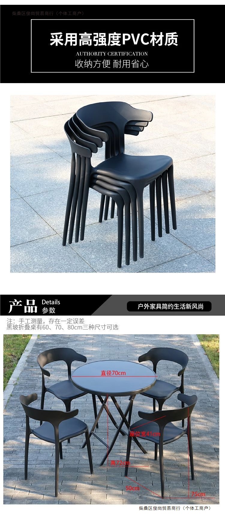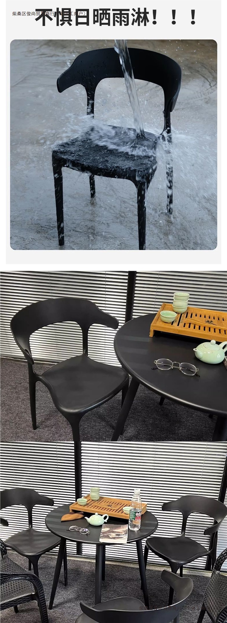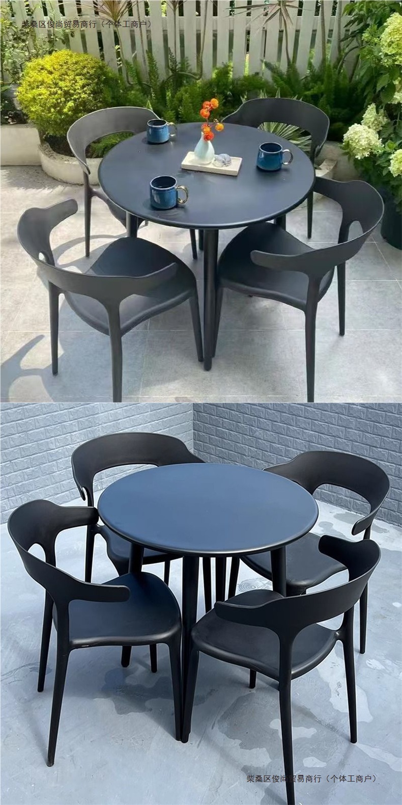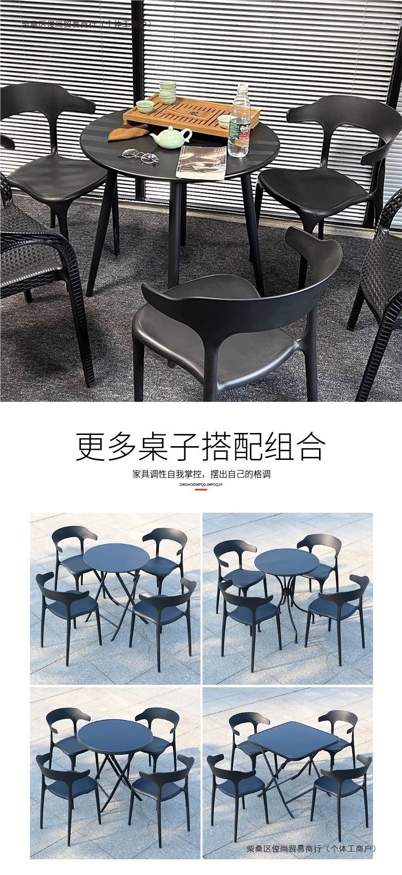 발코니 티 테이블과 의자, 야외 테이블과 의자, 안뜰 정원, 야외 레저 밀크티 가게, 새로운 플라스틱 등받이 의자