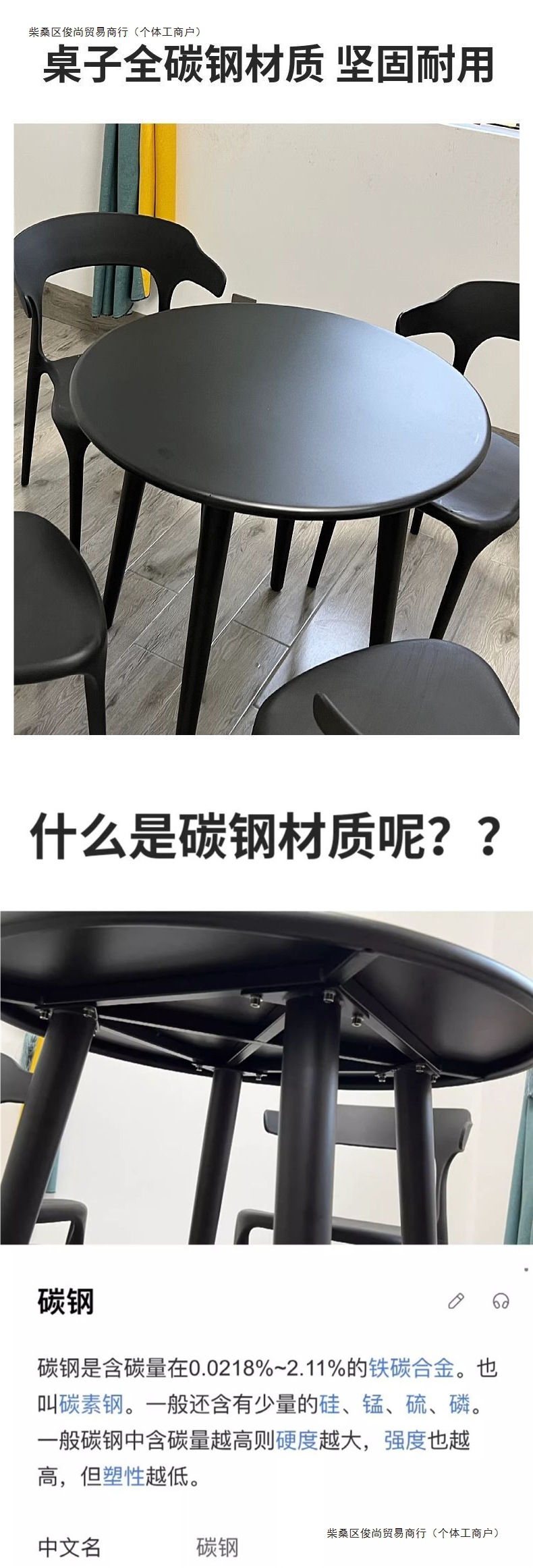 • 70cm 탄소강 원형 테이블 + 의자 4개(사각형 테이블에 대한 비고)