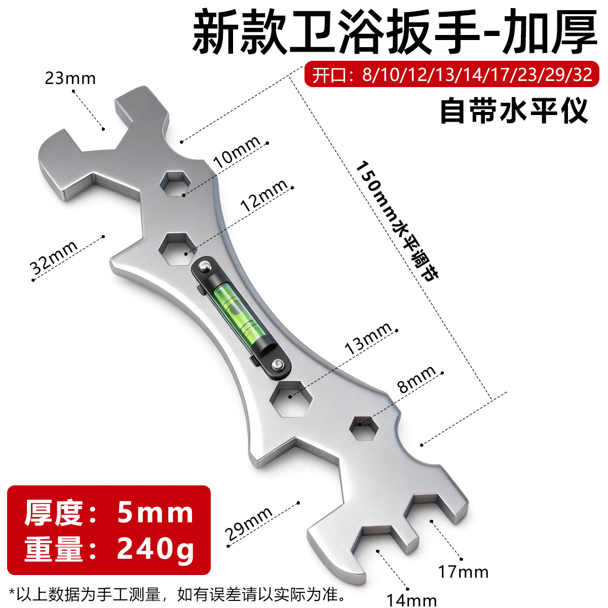 욕실 렌치, 샤워기 특수 도구, 다기능 두꺼운 레벨, 스테인레스 스틸 렌치, 배관공 유물
