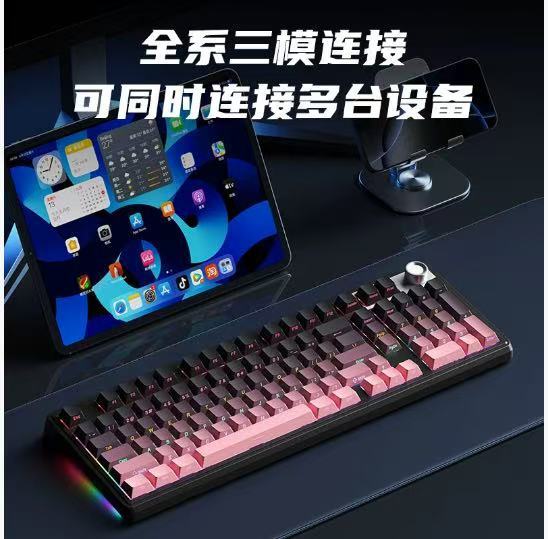 3모드 기계식 키보드, 색상 매칭 노브, 소음기, 등고선 게임 백라이트, 맞춤형 키보드, 녹색 축, 풀 키, 무충돌