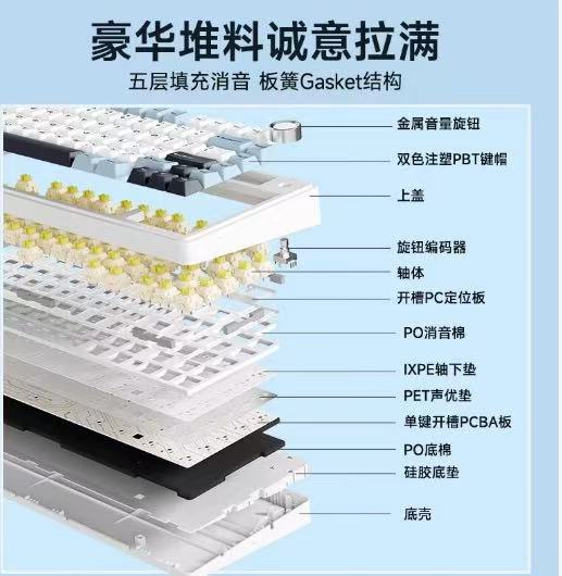 3모드 기계식 키보드, 색상 매칭 노브, 소음기, 등고선 게임 백라이트, 맞춤형 키보드, 녹색 축, 풀 키, 무충돌스토어 가기