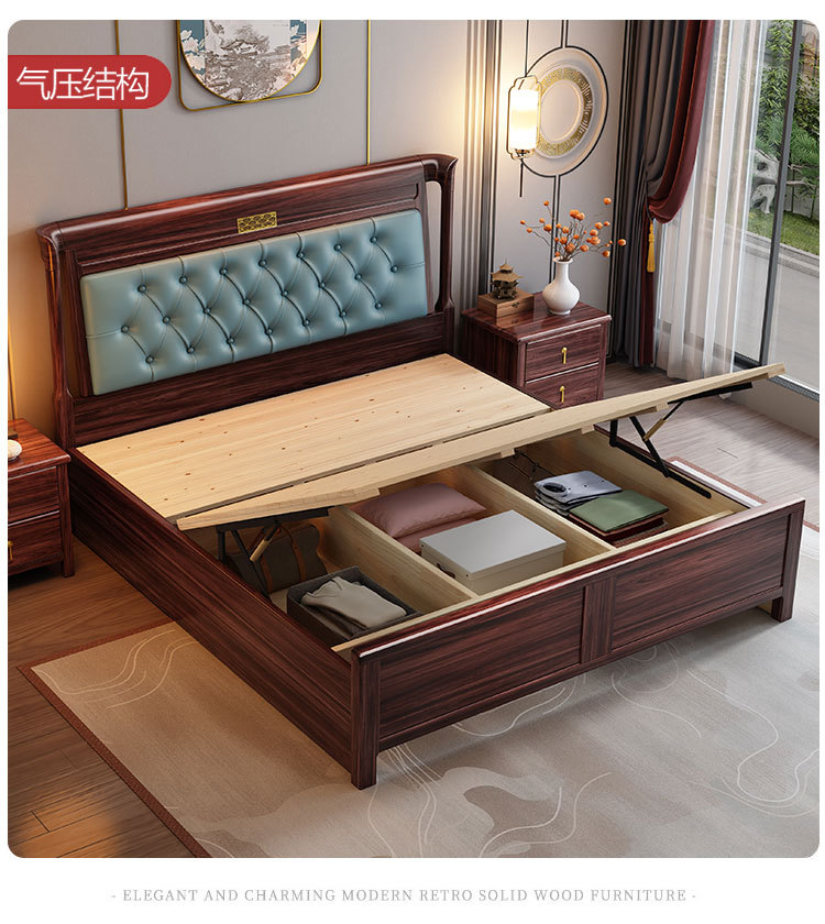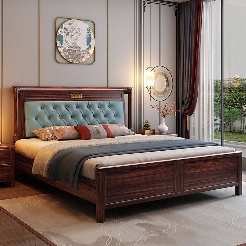 새로운 중국 스타일의 검은 금색 나무 원목 침대 현대적인 단순 1.8m 부드러운 더블 침대 마스터 침실 하이 엔드 분위기 침실 침대