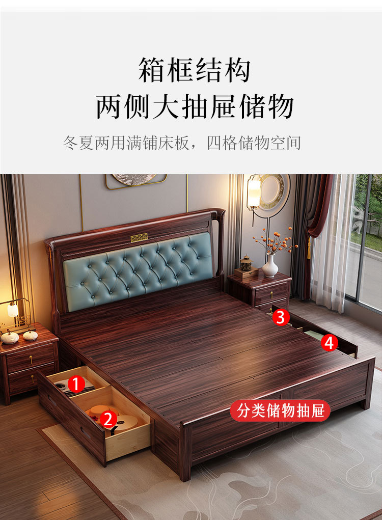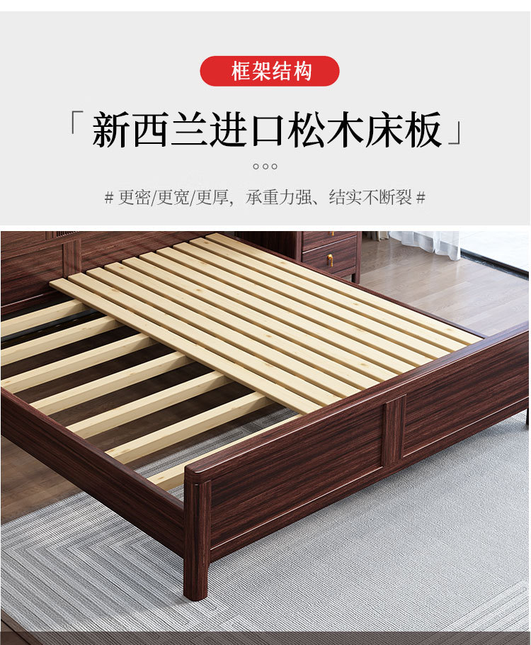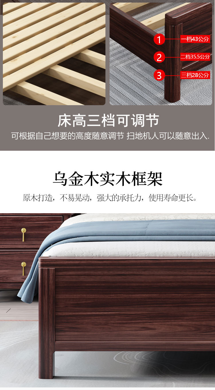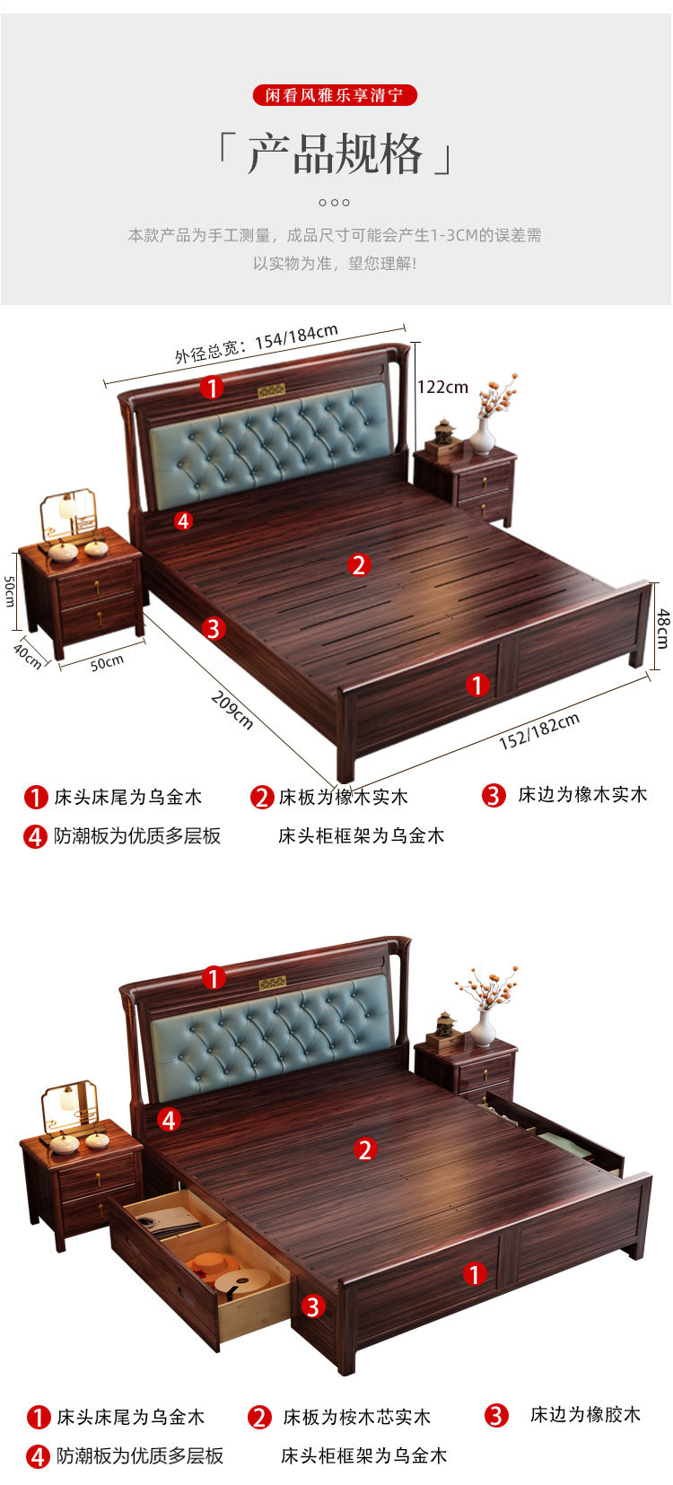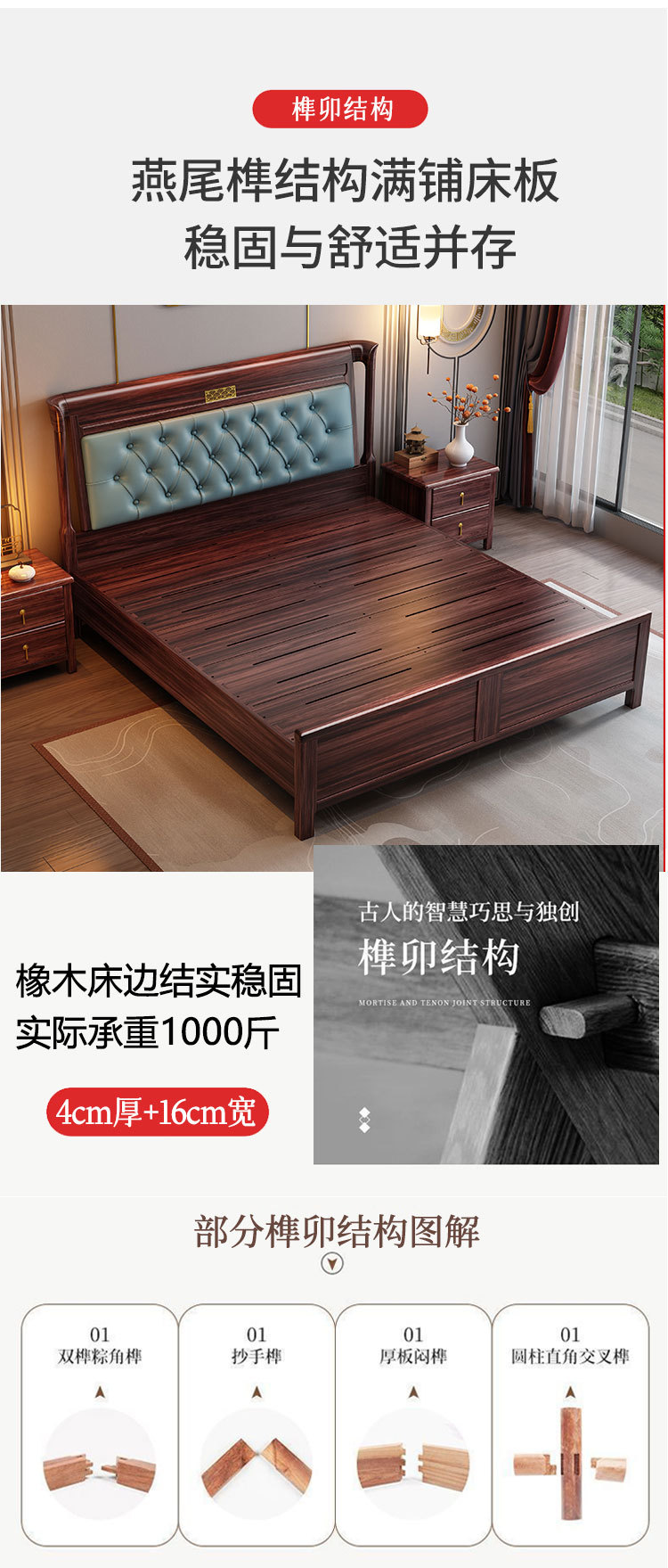 새로운 중국 스타일의 검은 금색 나무 원목 침대 현대적인 단순 1.8m 부드러운 더블 침대 마스터 침실 하이 엔드 분위기 침실 침대스토어 가기