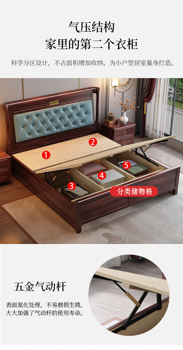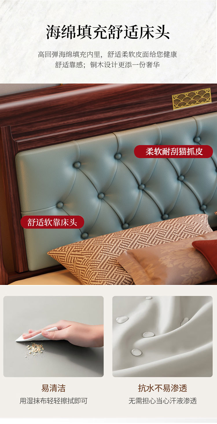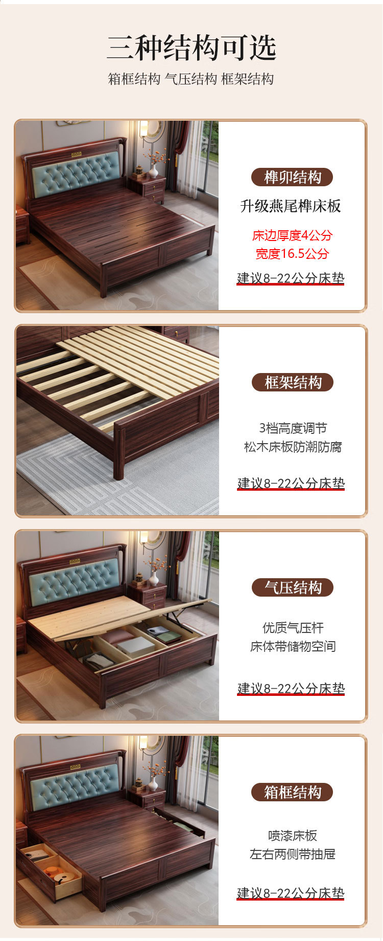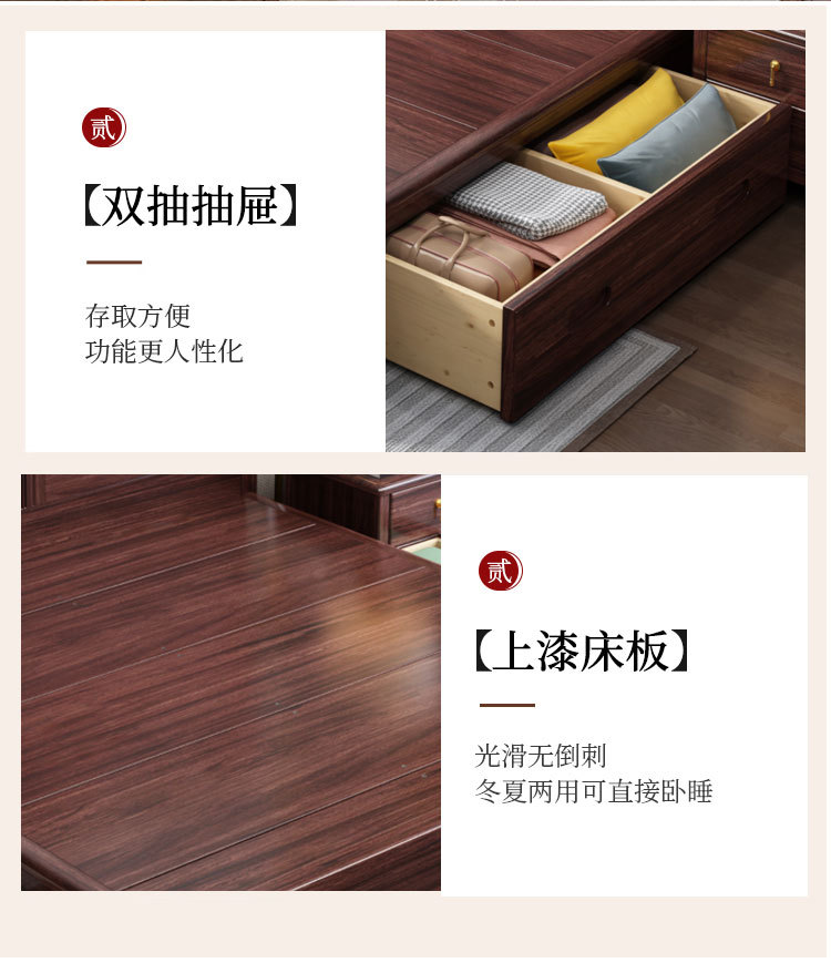 새로운 중국 스타일의 검은 금색 나무 원목 침대 현대적인 단순 1.8m 부드러운 더블 침대 마스터 침실 하이 엔드 분위기 침실 침대스토어 가기