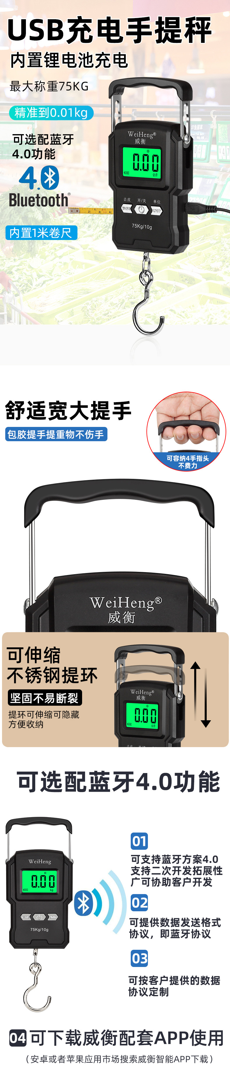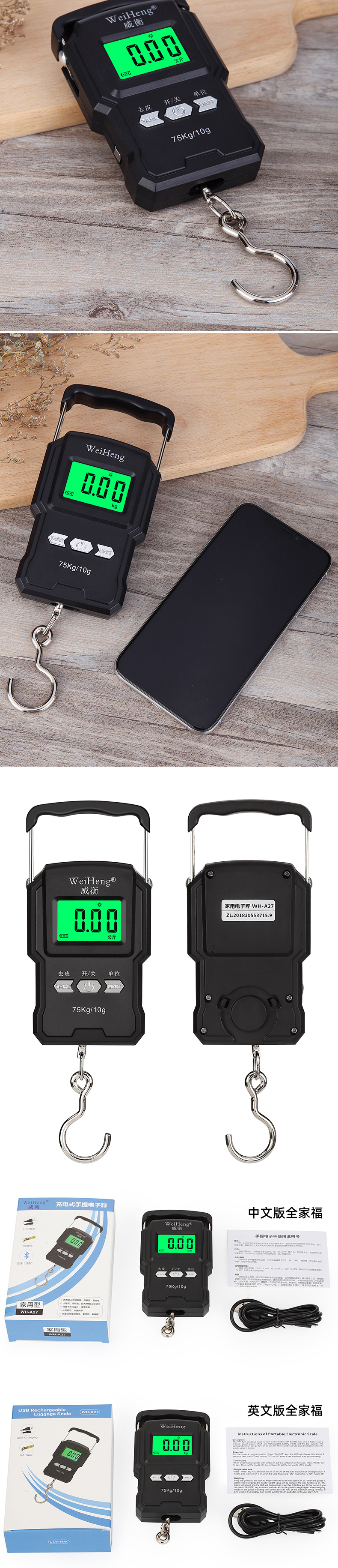 웨이헹 전자 휴대용 저울 도매 배송 75kg 택배 저울 눈금자 포함 채소 구매 및 노점용 휴대용 전자 저울