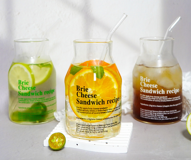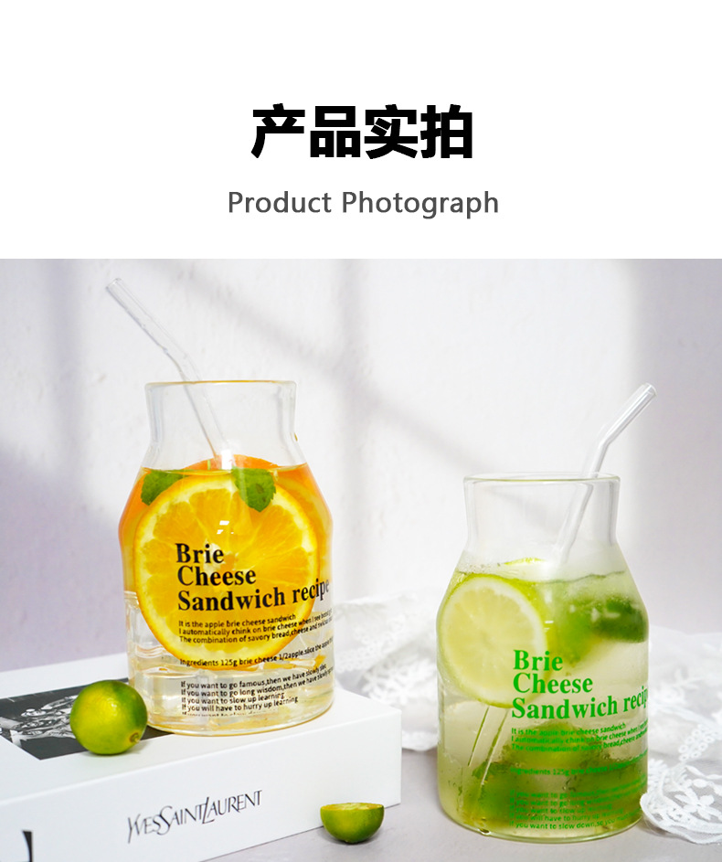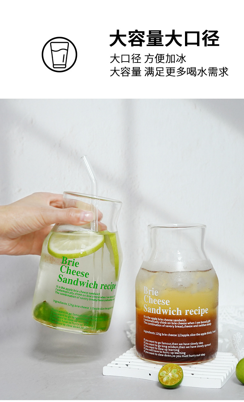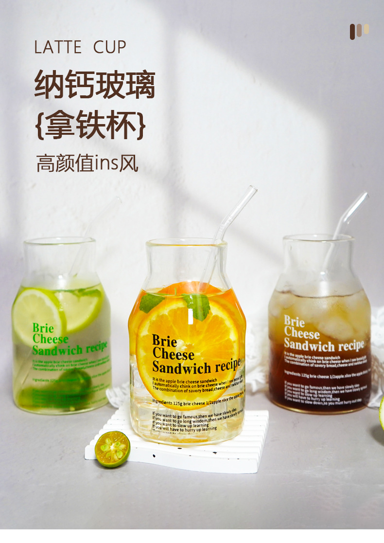 유리나트륨칼슘 가정용 물컵 대용량 밀크티 주스 컵 무료 밀짚 컵 고급 유리 물컵