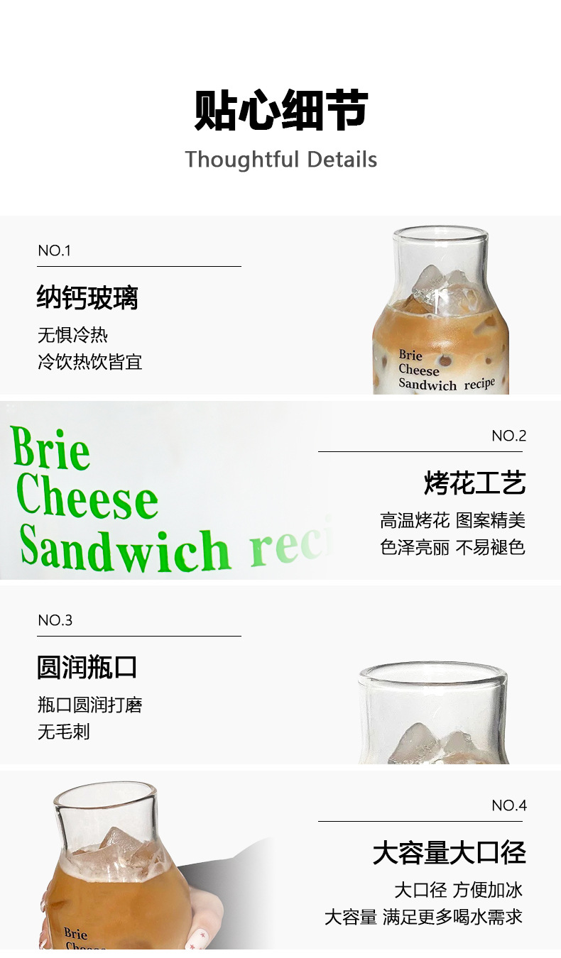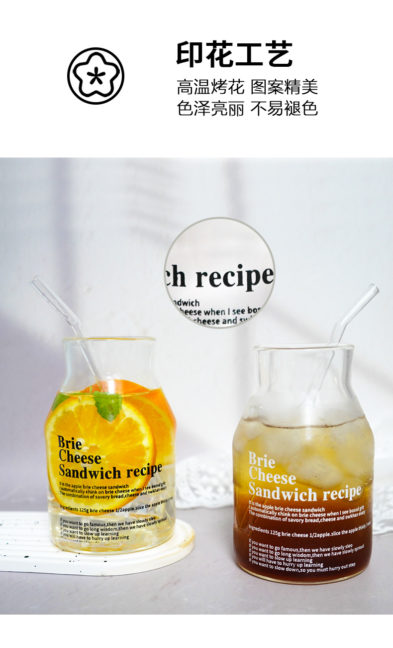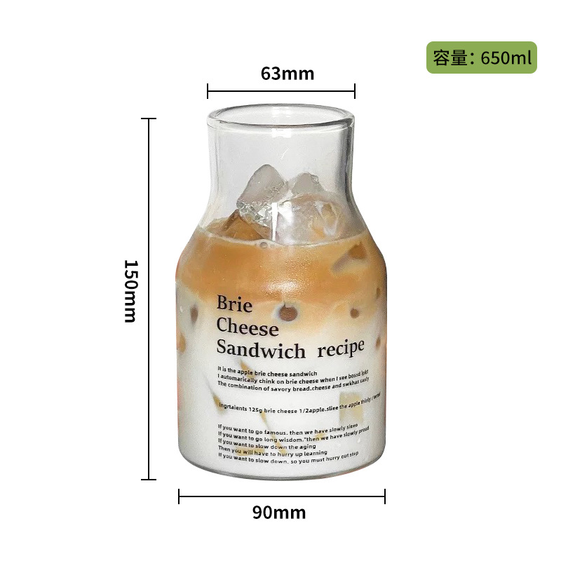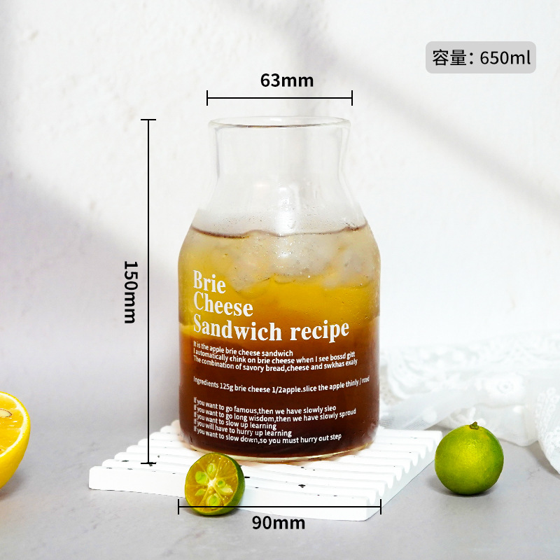 유리나트륨칼슘 가정용 물컵 대용량 밀크티 주스 컵 무료 밀짚 컵 고급 유리 물컵