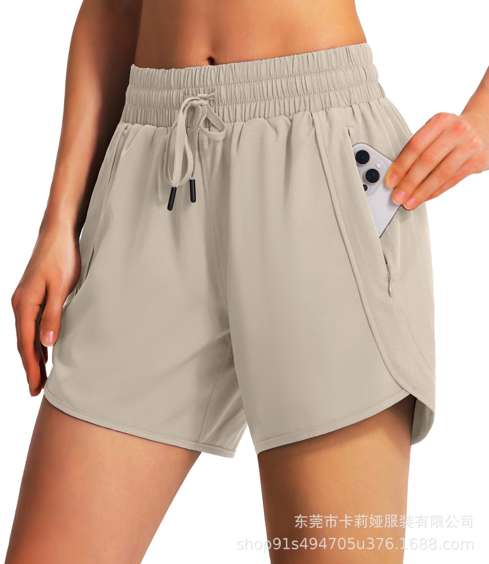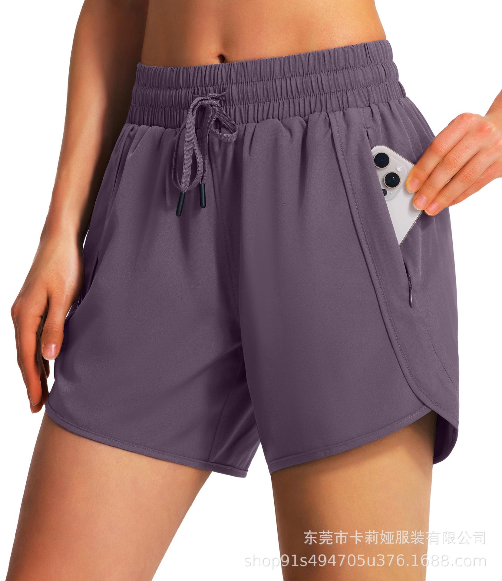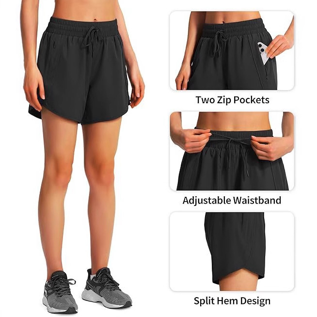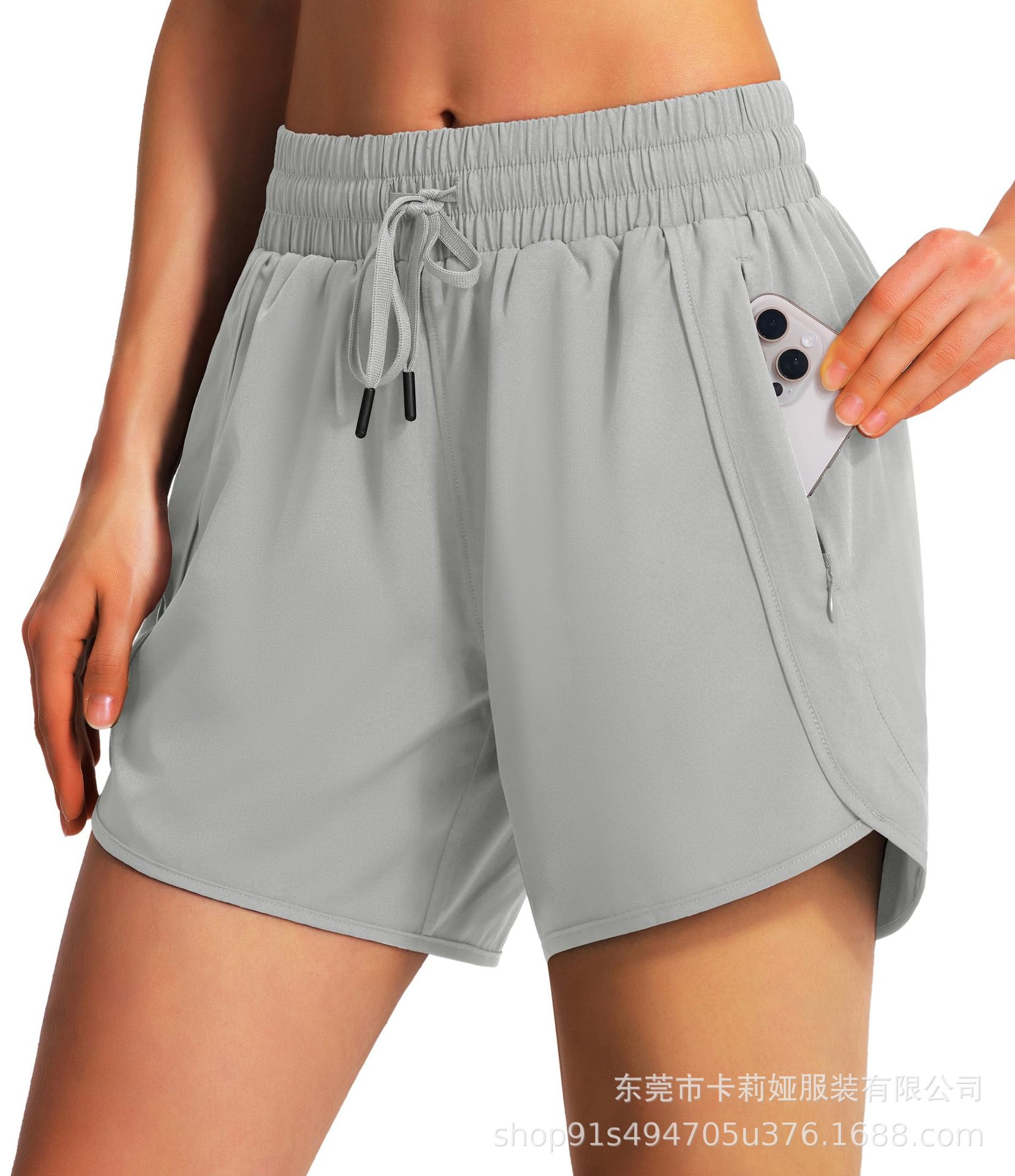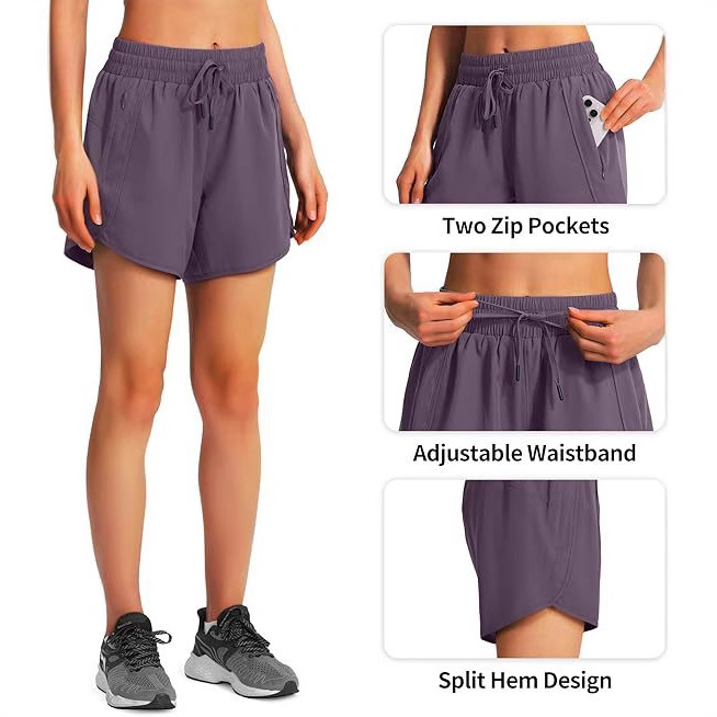 2025 아마존 스포츠 런닝 속건성 경량 피트니스 반바지 여성용 여름 지퍼 포켓 스포츠 반바지