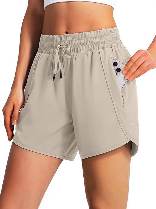 2025 아마존 스포츠 런닝 속건성 경량 피트니스 반바지 여성용 여름 지퍼 포켓 스포츠 반바지스토어 가기