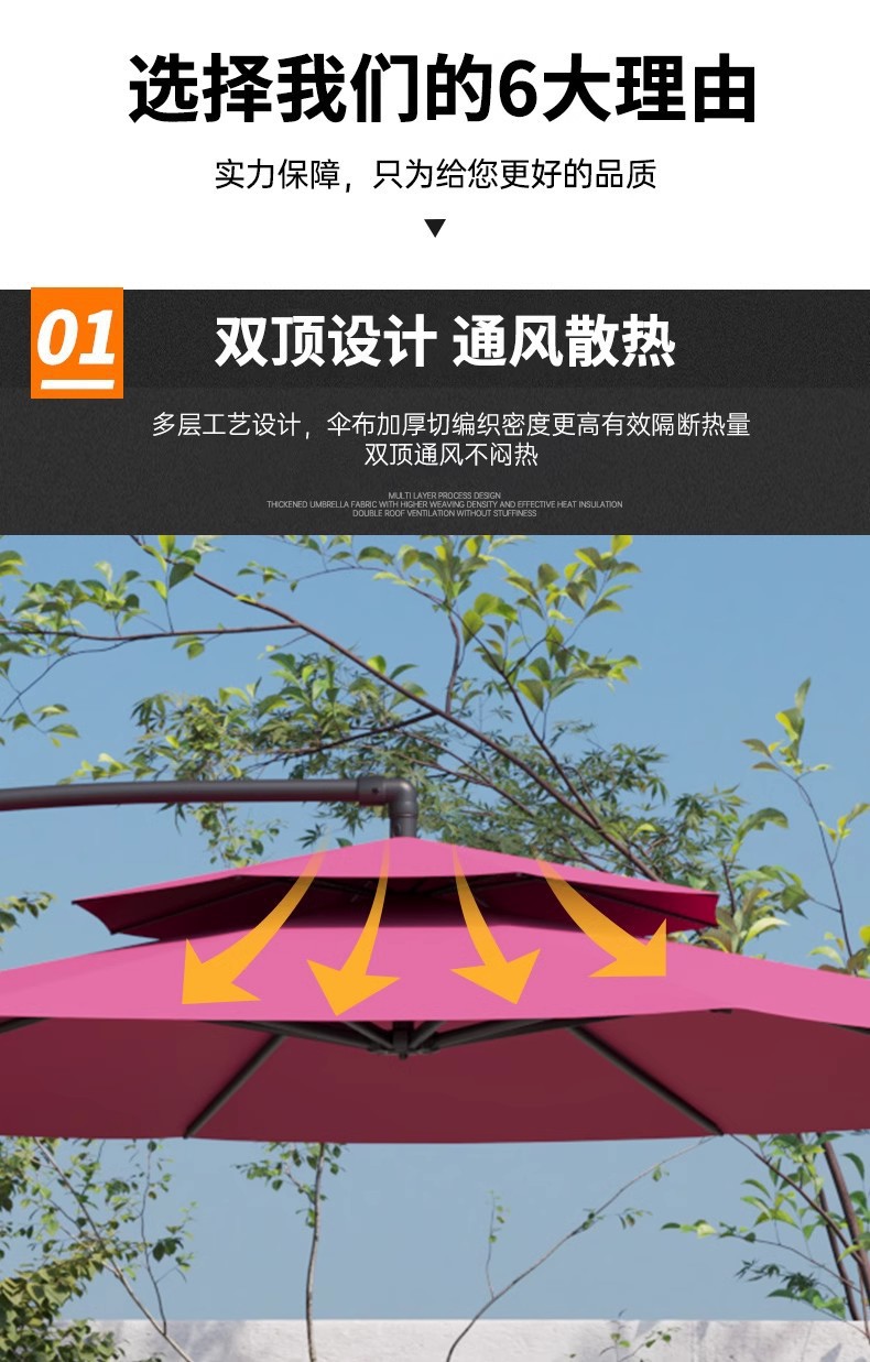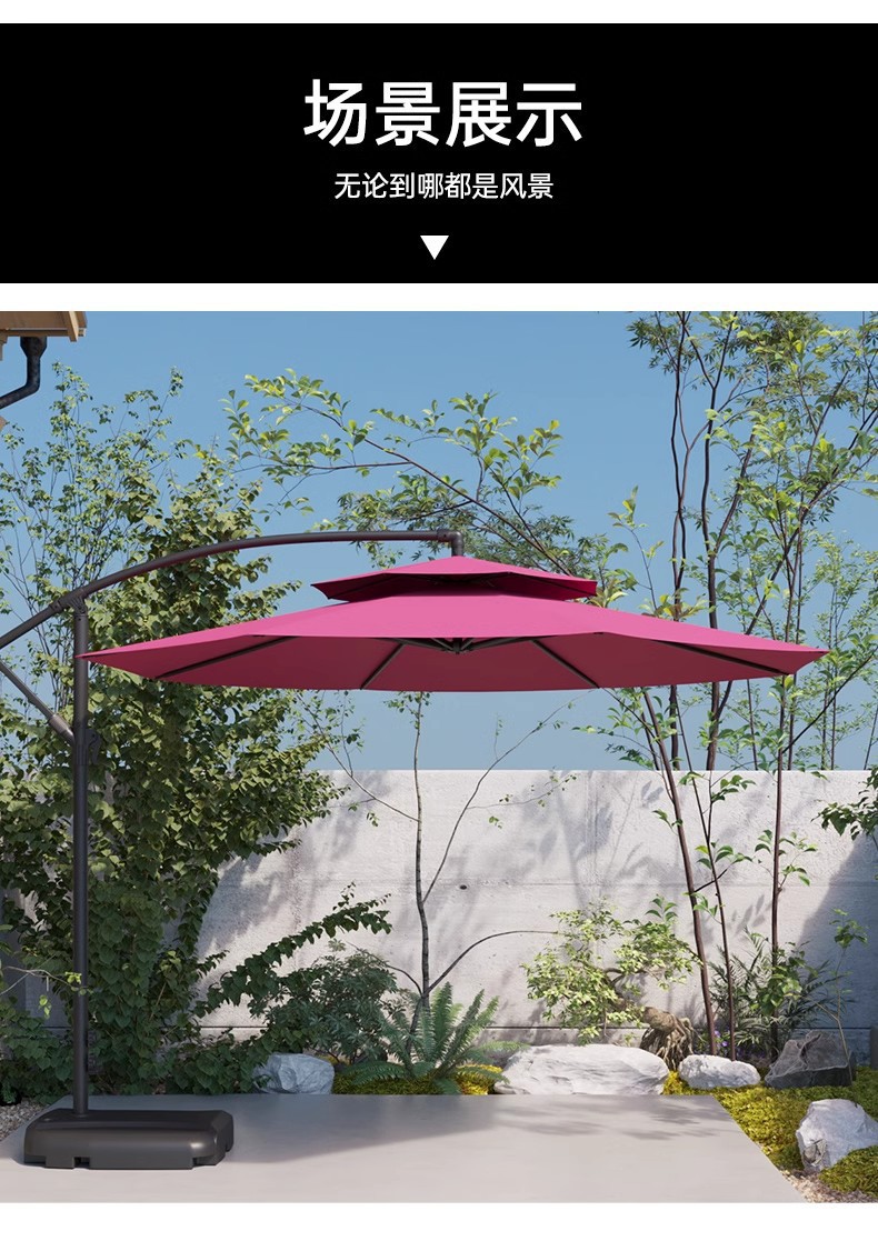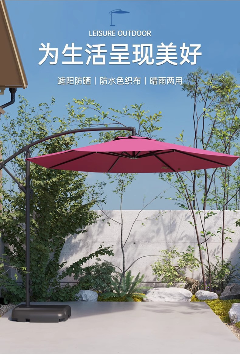 • 알루미늄 합금 싱글탑 3m 버건디 바나나 우산(물이 채워진 베이스 60kg개 포함)