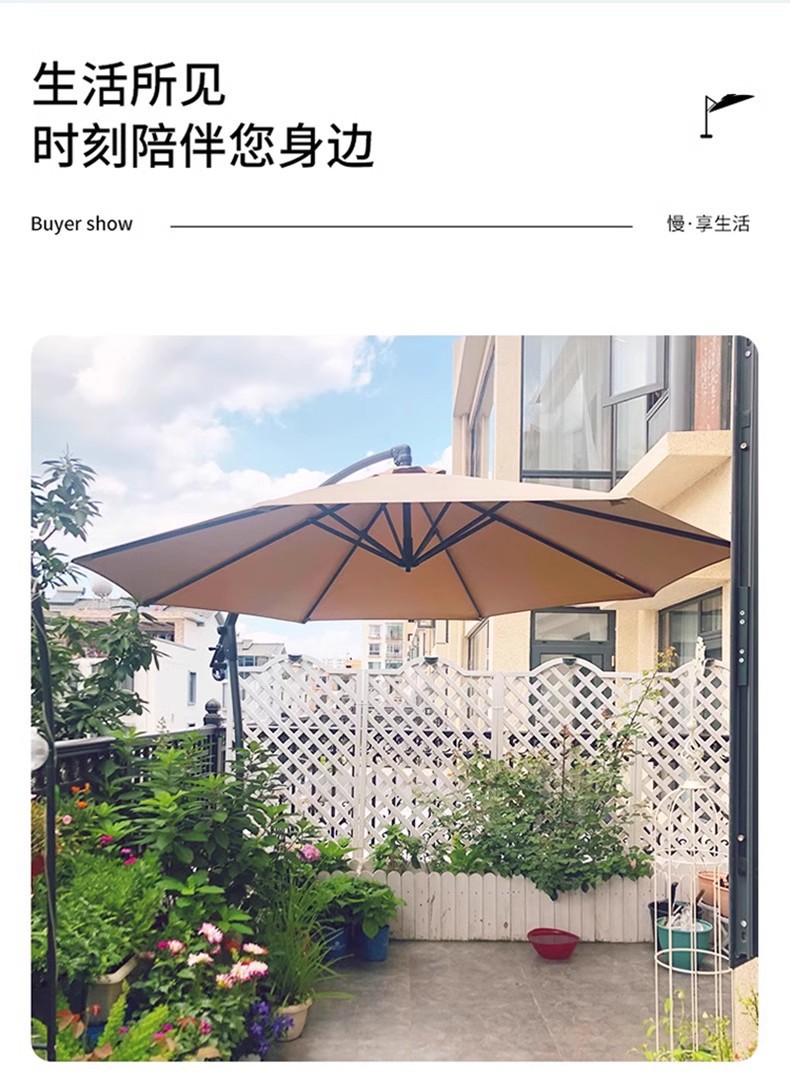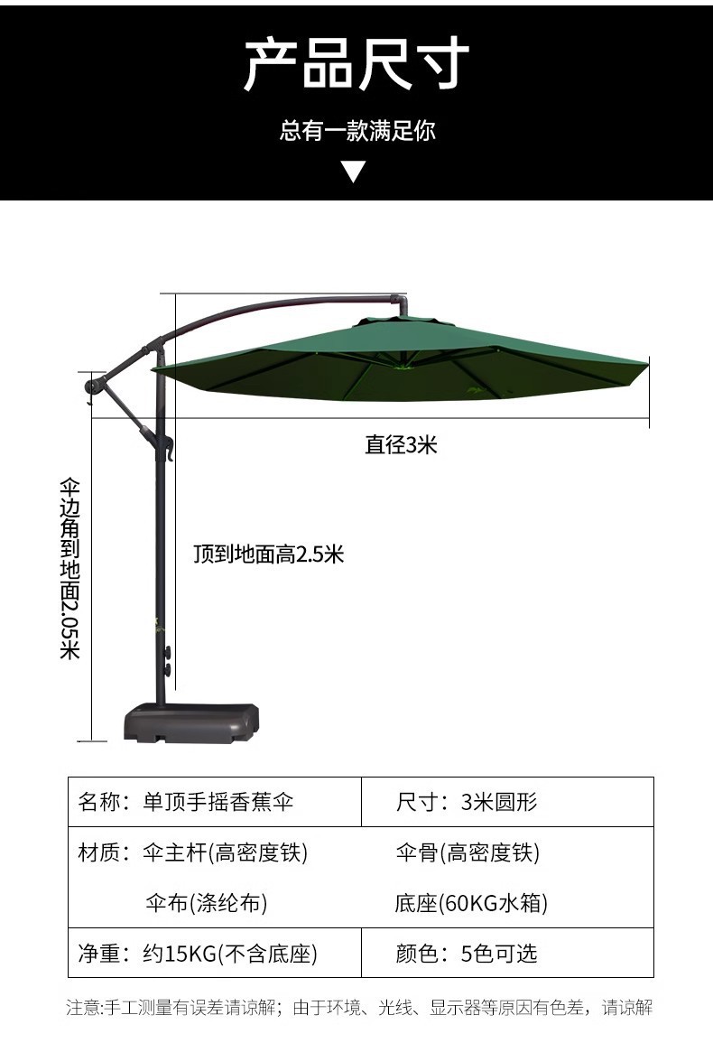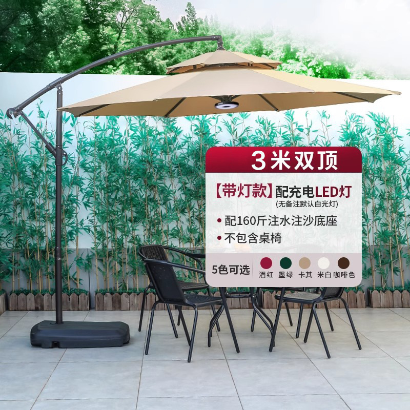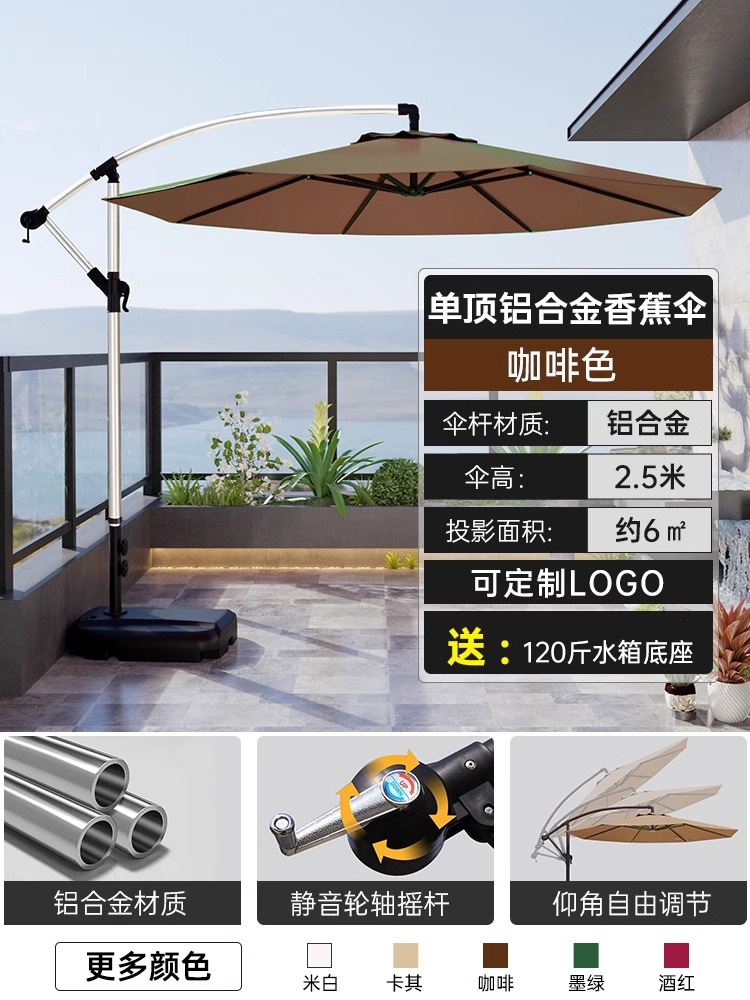 • 알루미늄 합금 싱글탑 3m 갈색 바나나 우산(물이 채워진 베이스 60kg개 포함)