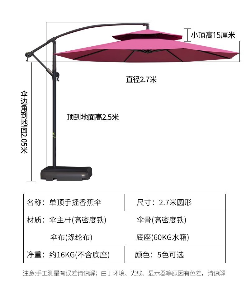 • 아이언 싱글탑 2.7m 버건디 바나나 우산 (물이 채워진 베이스 60kg 포함)