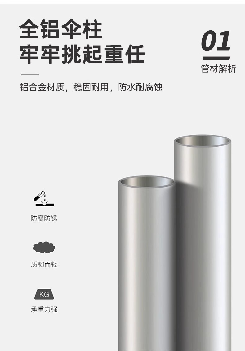 • 알루미늄 합금 싱글 탑 3m 흰색 바나나 우산(물이 채워진 베이스 60kg개 포함)