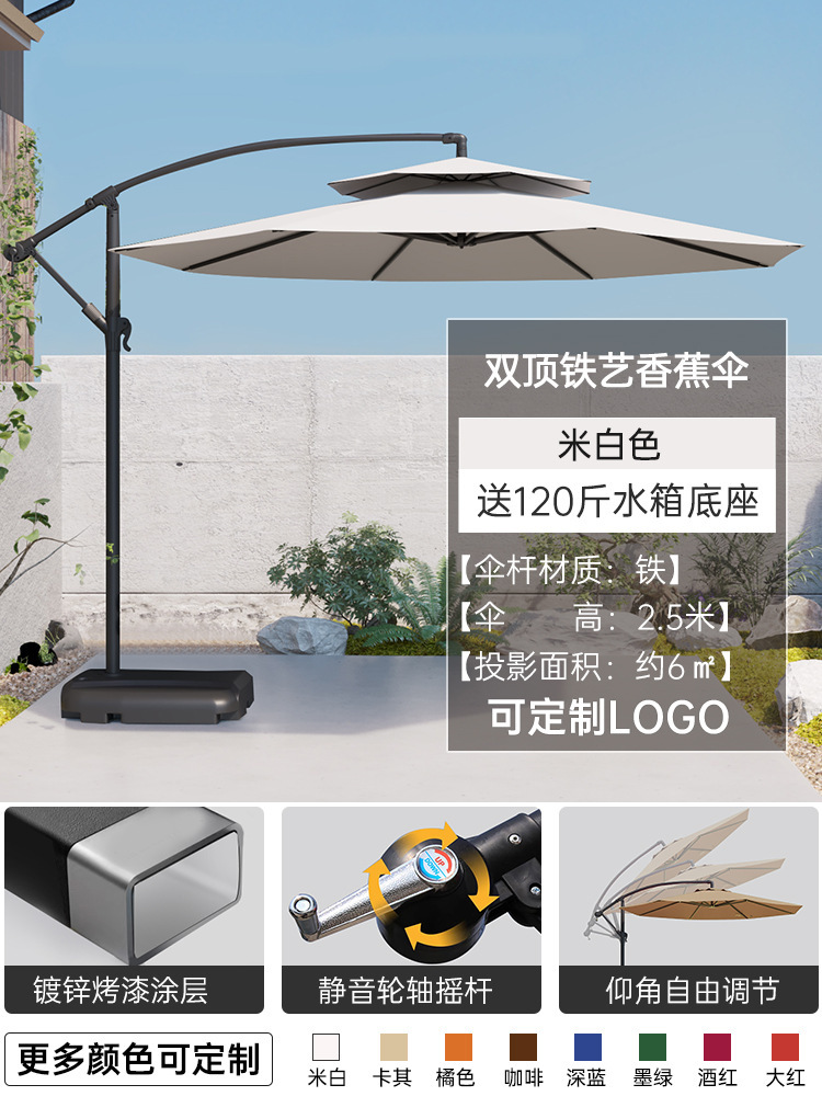 • 아이언 더블탑 2.7m 카키 바나나 우산(물채운 베이스 60kg개 포함)