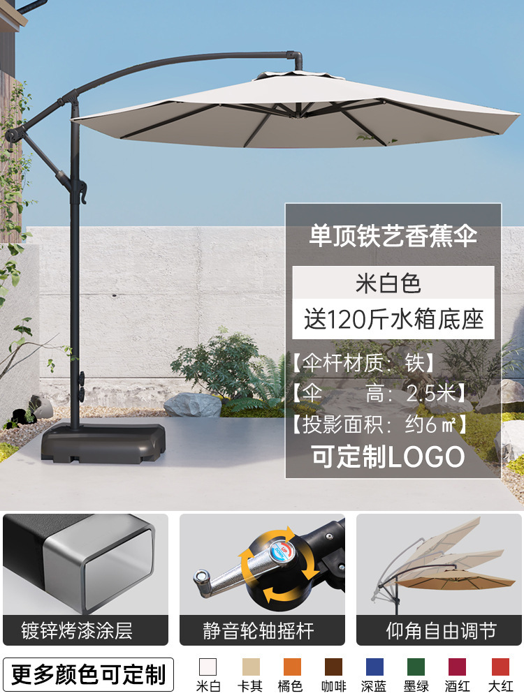 • 아이언 싱글탑 2.7m 카키 바나나 우산(물이 채워진 베이스 60kg개 포함)