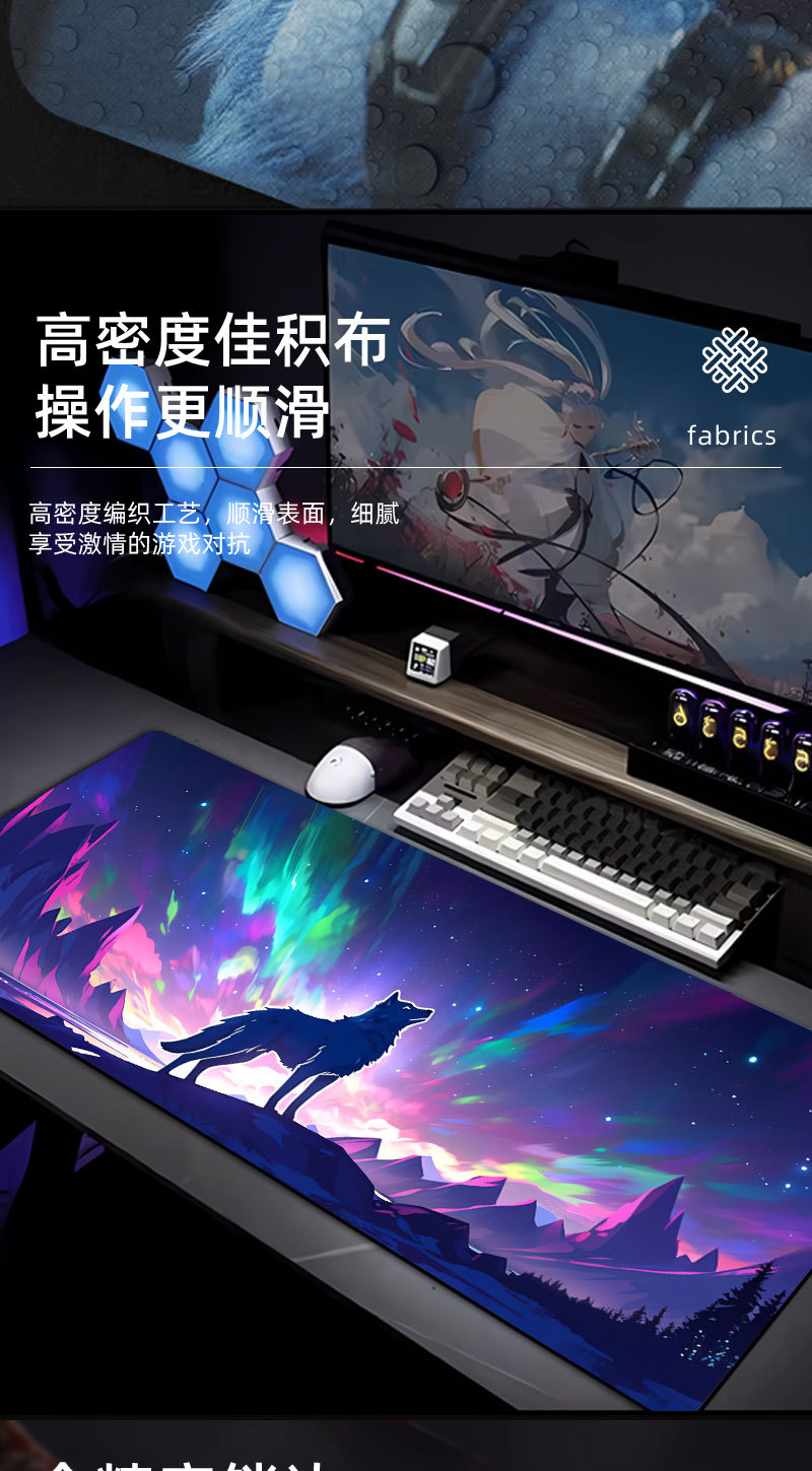1.布面采用了密度好的佳绩布,表面细腻平滑,适用于大部分光电鼠标且定位好用。