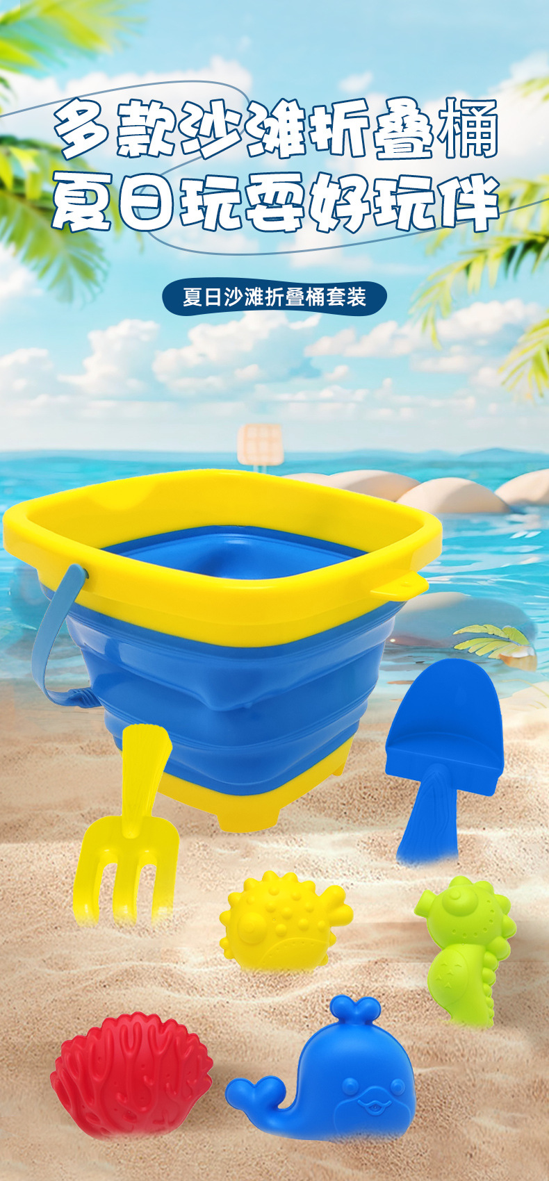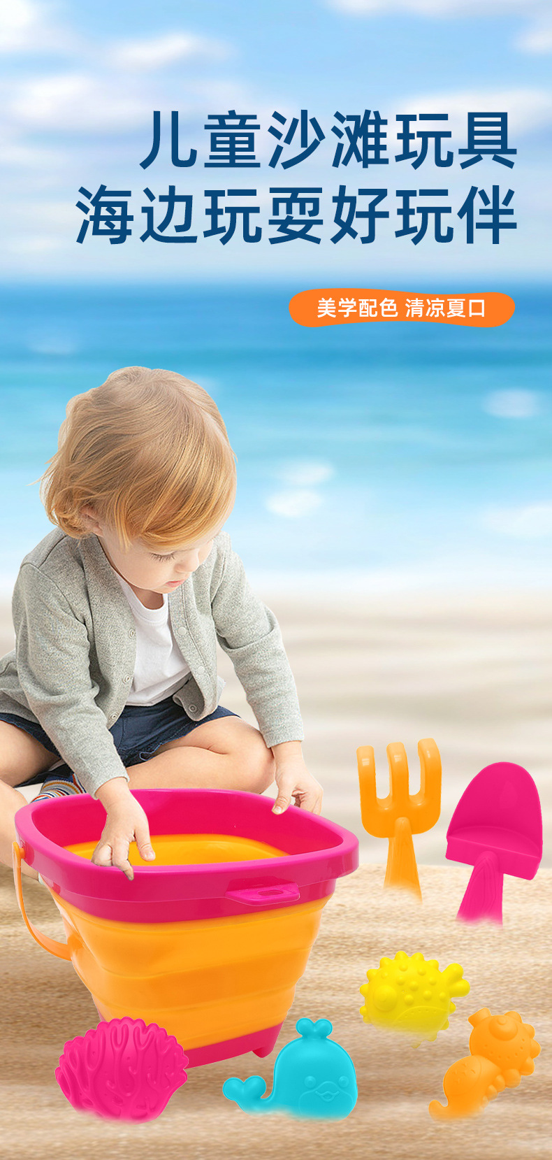 새로운 해변 장난감 세트, 모래 파기 삽, 트롤리, 해변 양동이, 어린이 해변 모래 놀이 및 물놀이 도구 세트스토어 가기