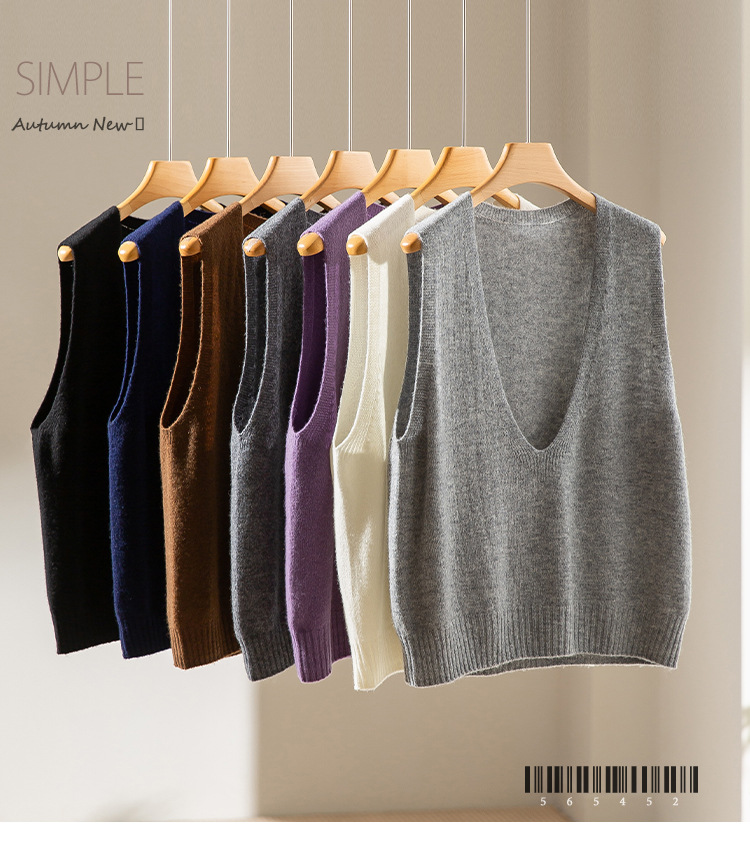 2026년 신상 호주산 메리노 순모 V넥 조끼, 우아하고 다재다능한 레이어드 니트 조끼 여성용