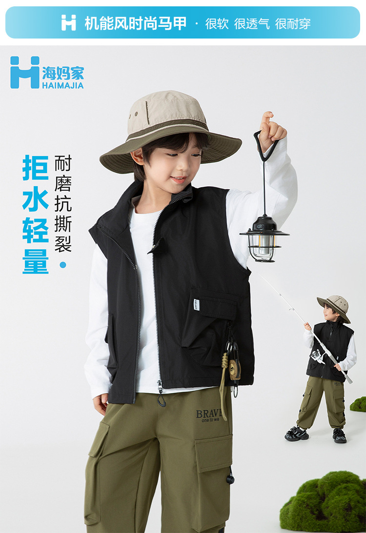 하이마아동복 2026 봄 가을 신상 남아 작업복 조끼 봄 아우터 조끼 중대형 아동 야외복스토어 가기
