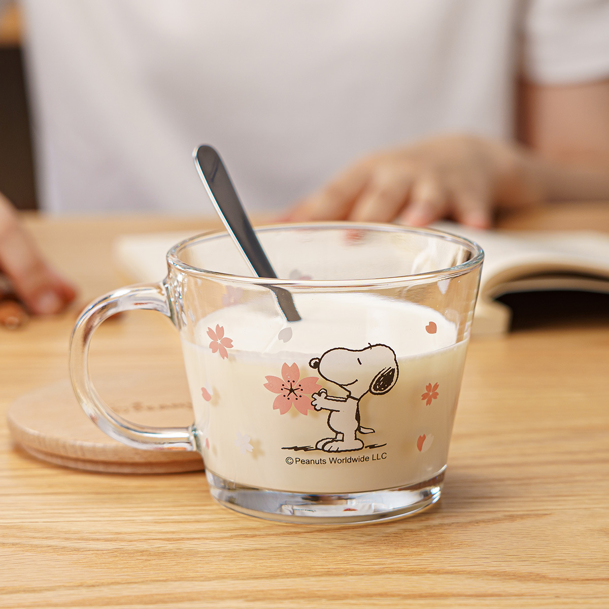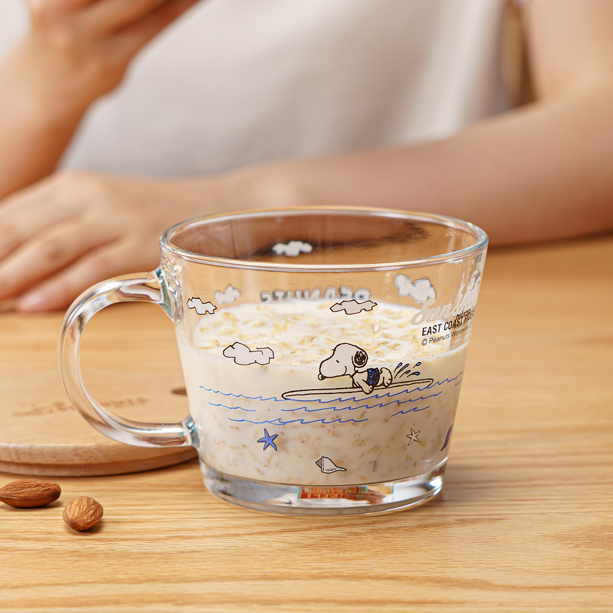 스누피 유리 요구르트 오트밀 아침 식사 어린이 가정용 물컵 손잡이 대용량 우유 컵 뚜껑 포함스토어 가기