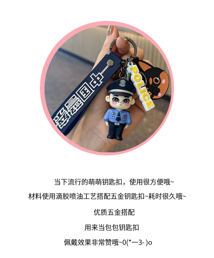 맞춤형 만화 경찰 삼촌 열쇠 고리 펜던트, 경찰 교통 경찰 삼촌 인형, 핸드백 펜던트, 기념품
