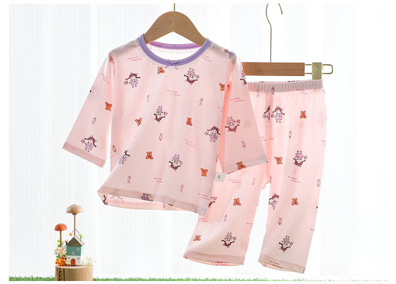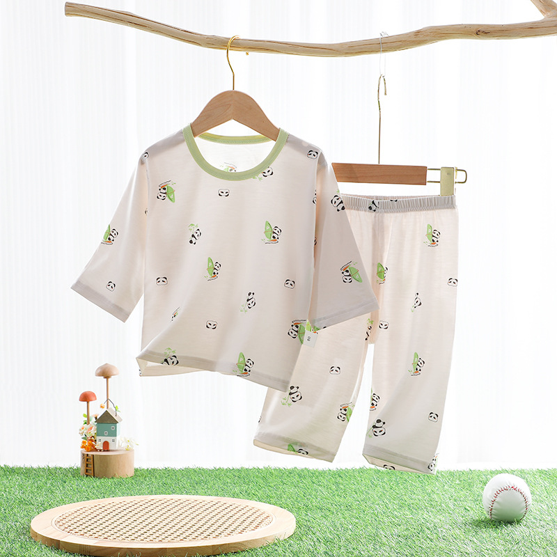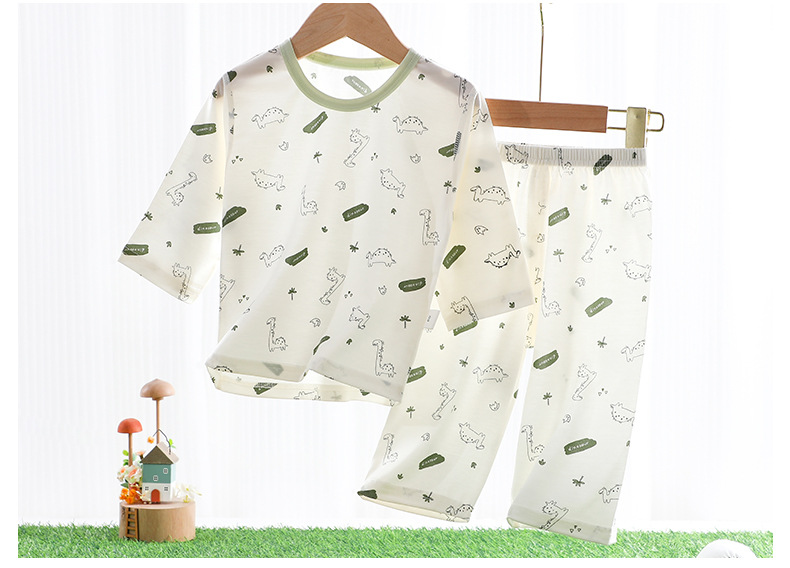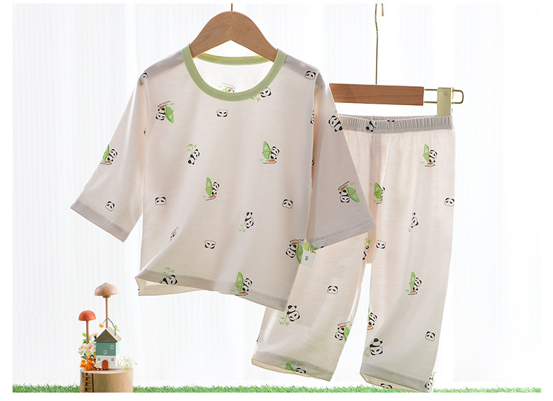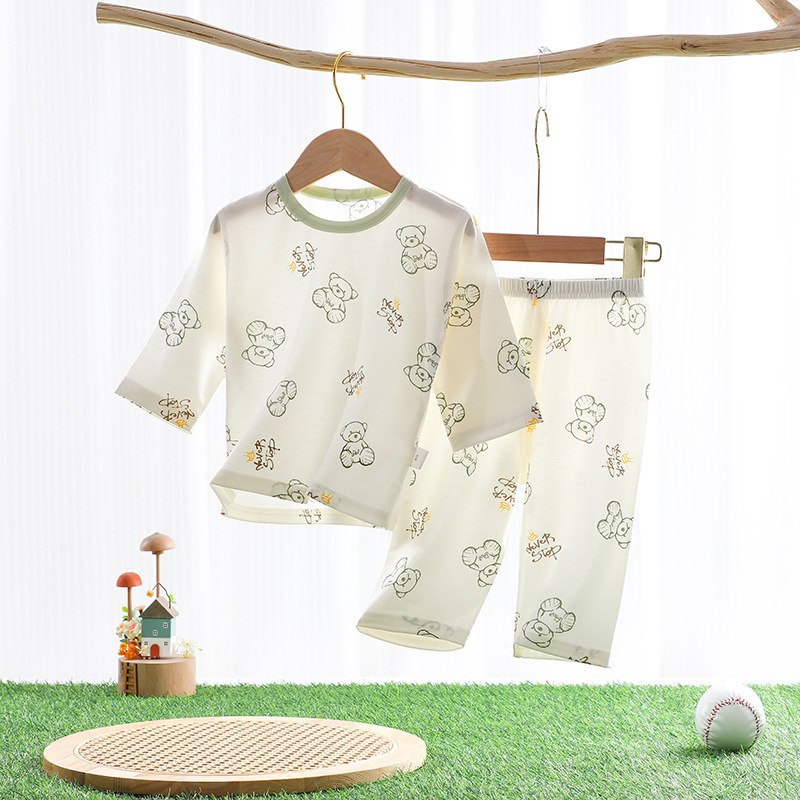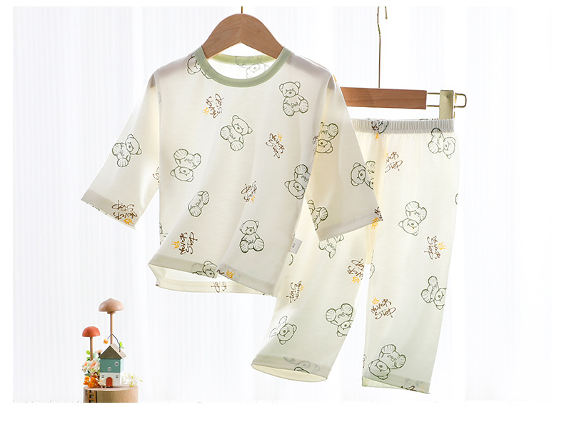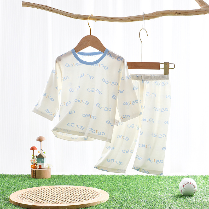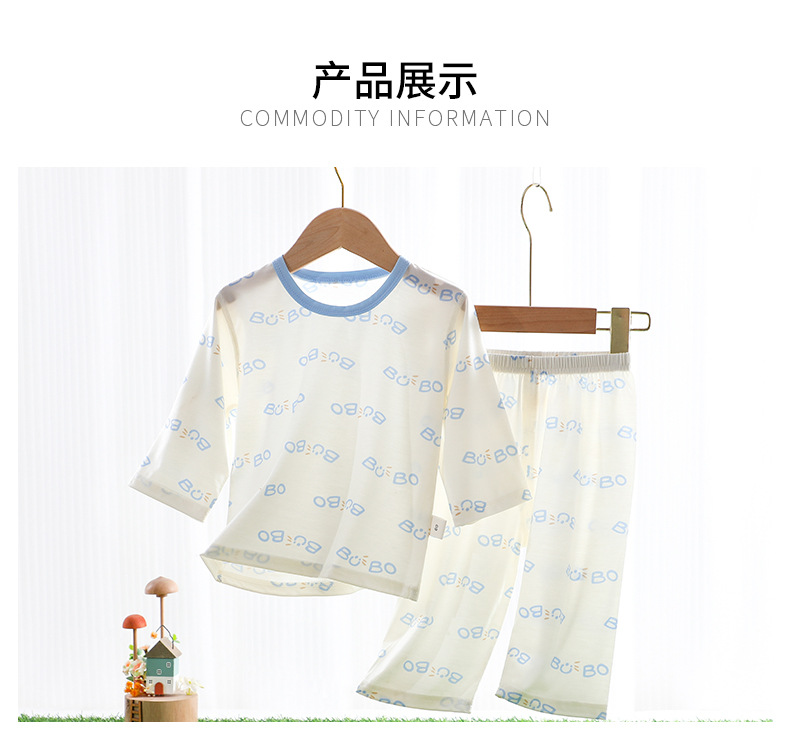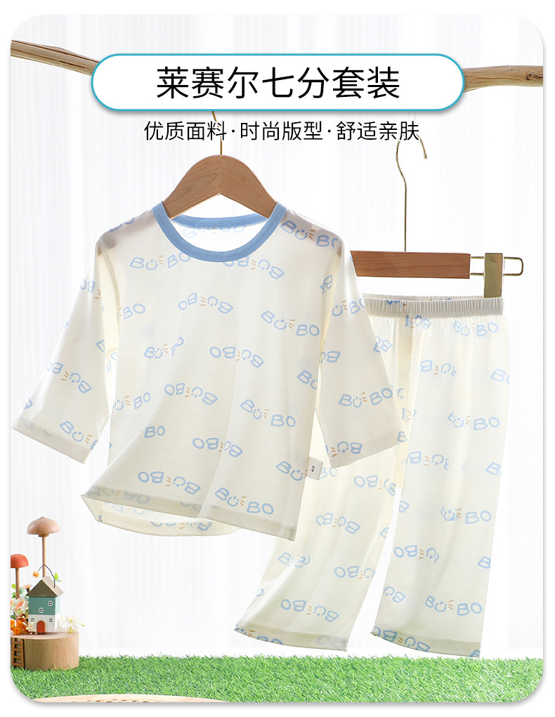 아기 잠옷 여름 얇은 7부 소매 에어컨 의류 중소형 어린이 텐셀 시원한 느낌 소년 소녀 가정복 세트스토어 가기