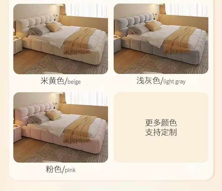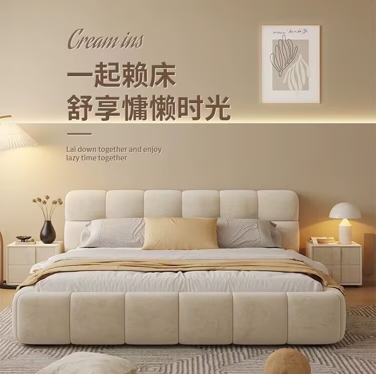 인터넷 인기 상품 원목 침대 가죽 침대 더블 침대 크림 스타일 마스터 침실 대형 침대 크림풍 라이트 럭셔리 모던 심플 퍼프 침대