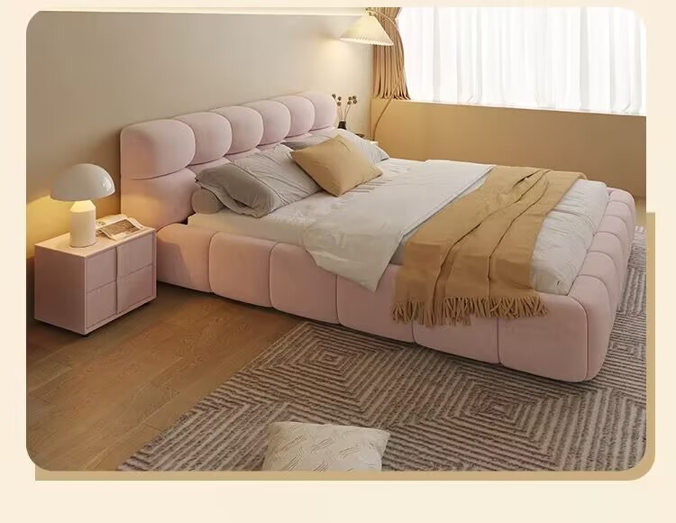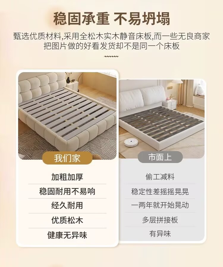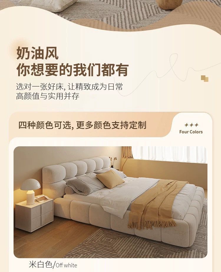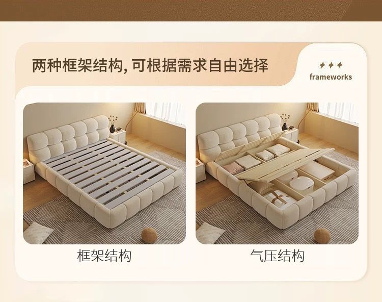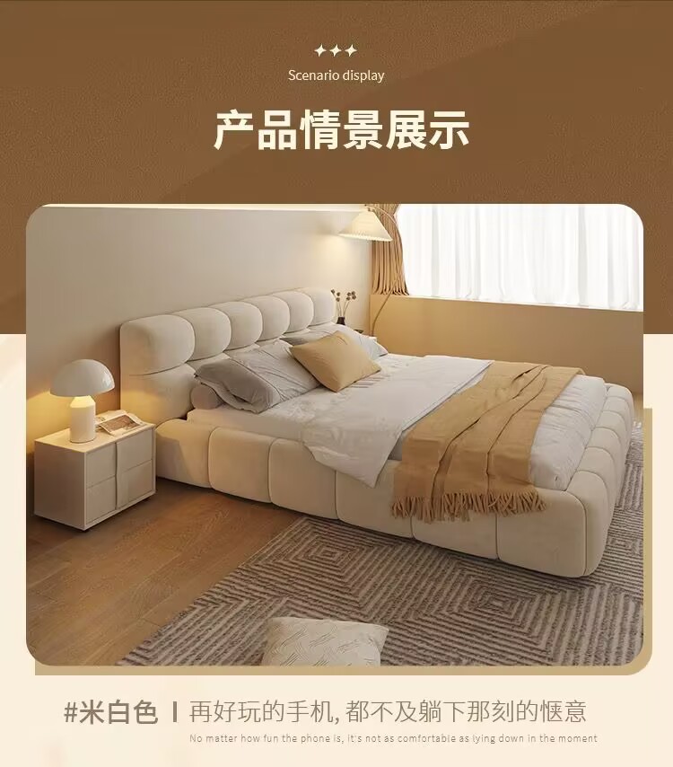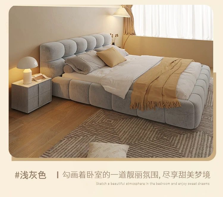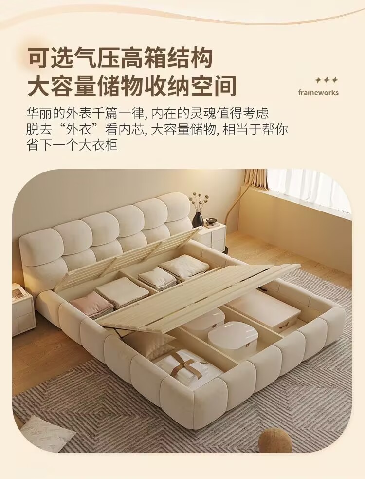 인터넷 인기 상품 원목 침대 가죽 침대 더블 침대 크림 스타일 마스터 침실 대형 침대 크림풍 라이트 럭셔리 모던 심플 퍼프 침대스토어 가기