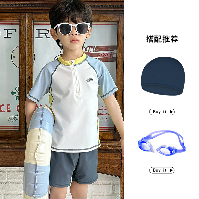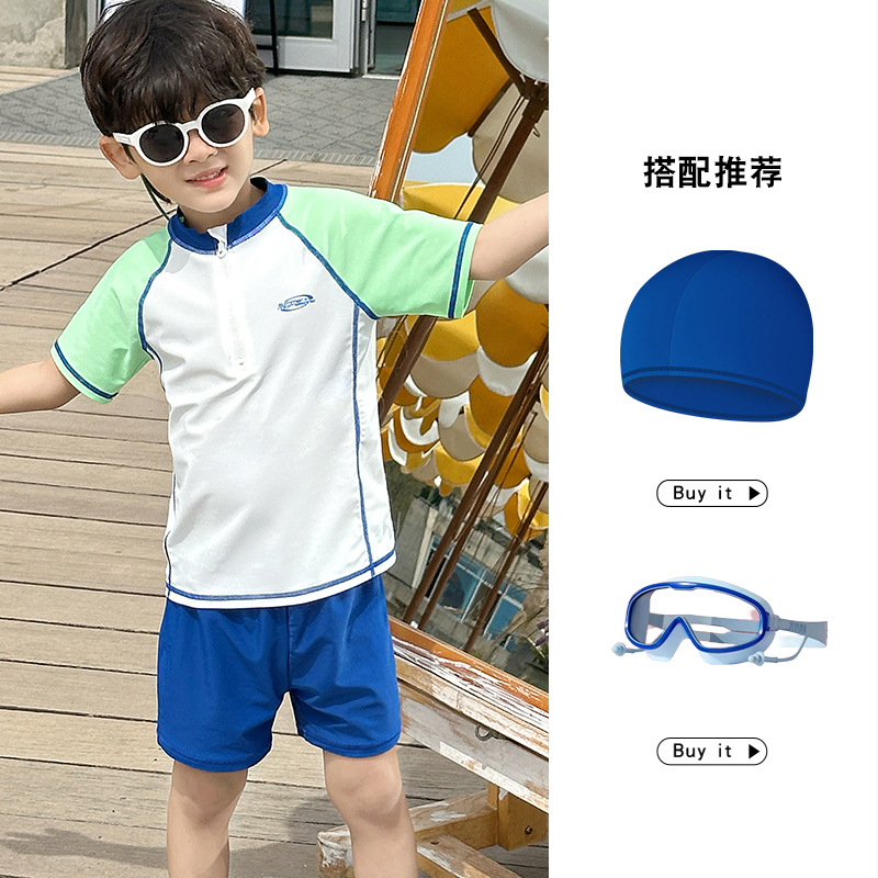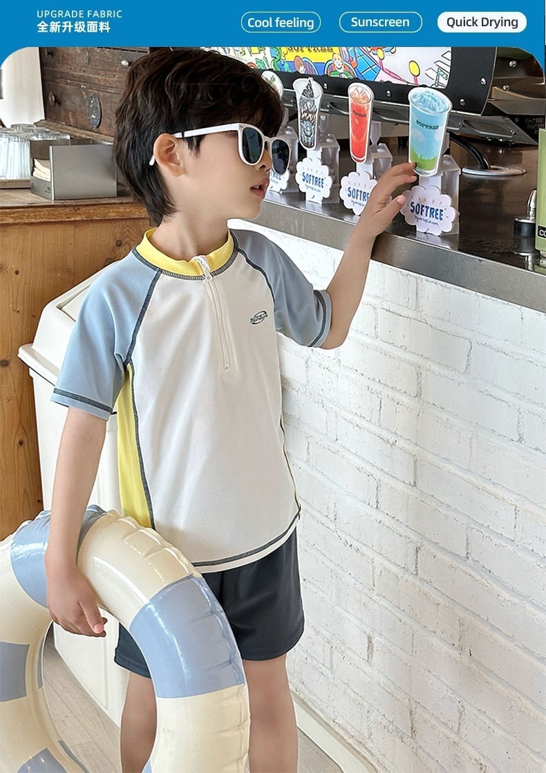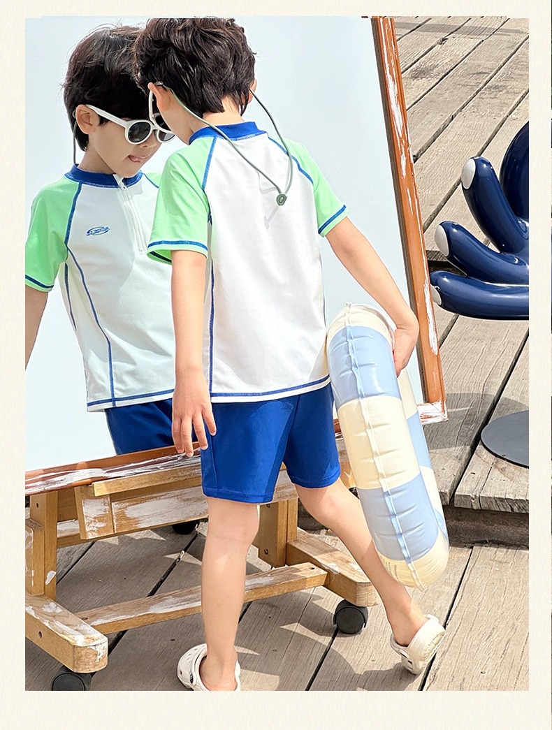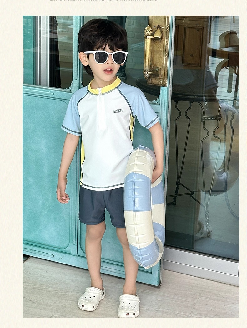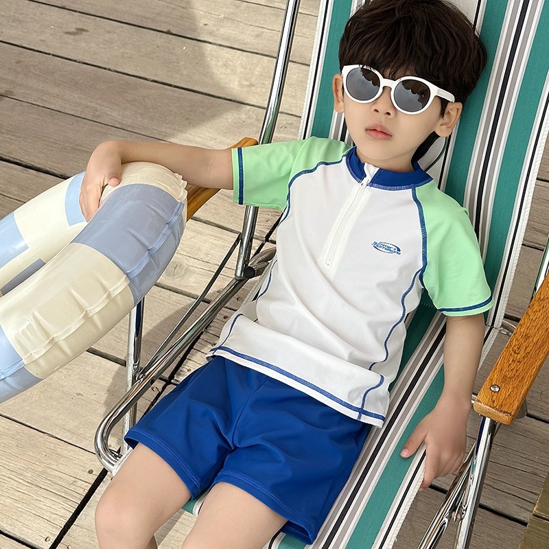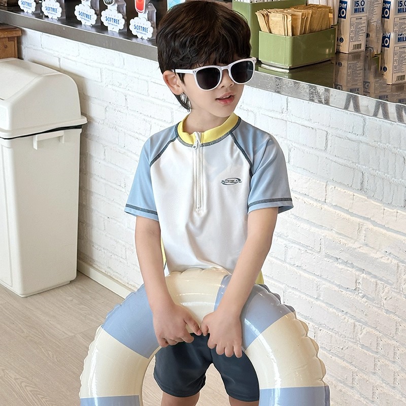 소년 스플릿 수영복 2025 새로운 반팔 자외선 차단제 속건성 수영복 중대형 어린이 여름 아기 해변 수영복스토어 가기