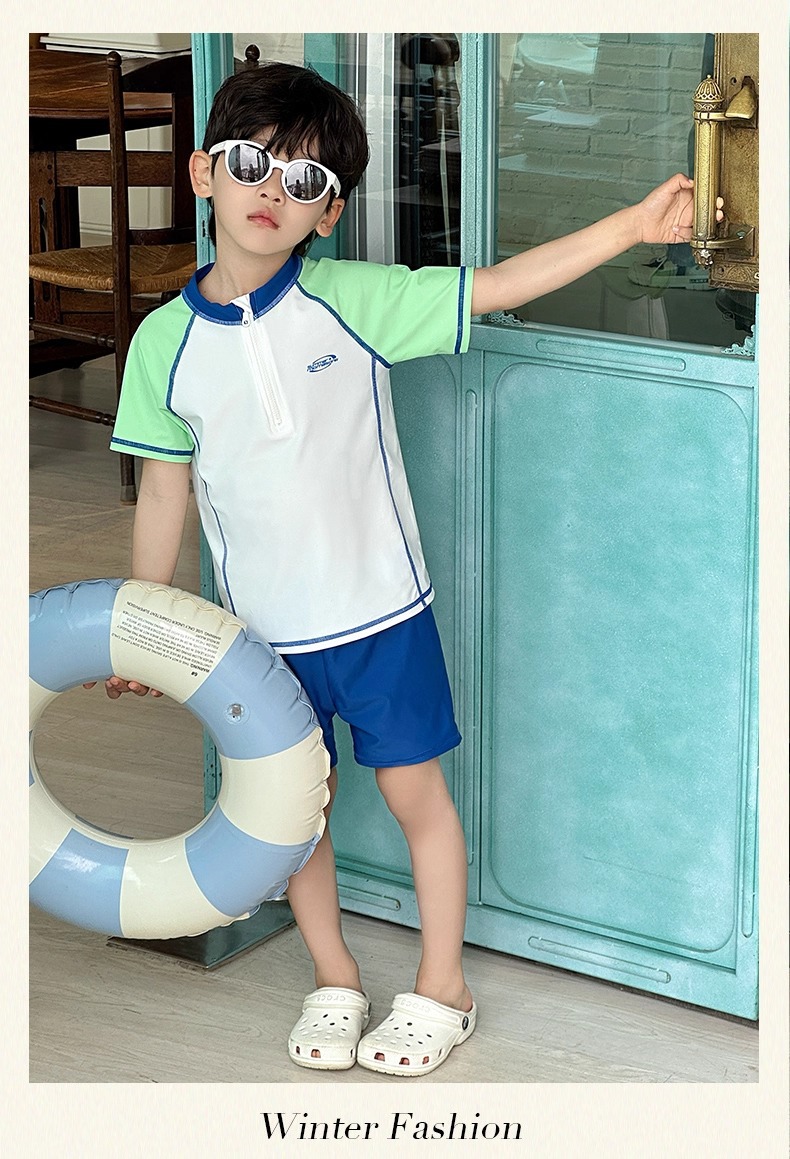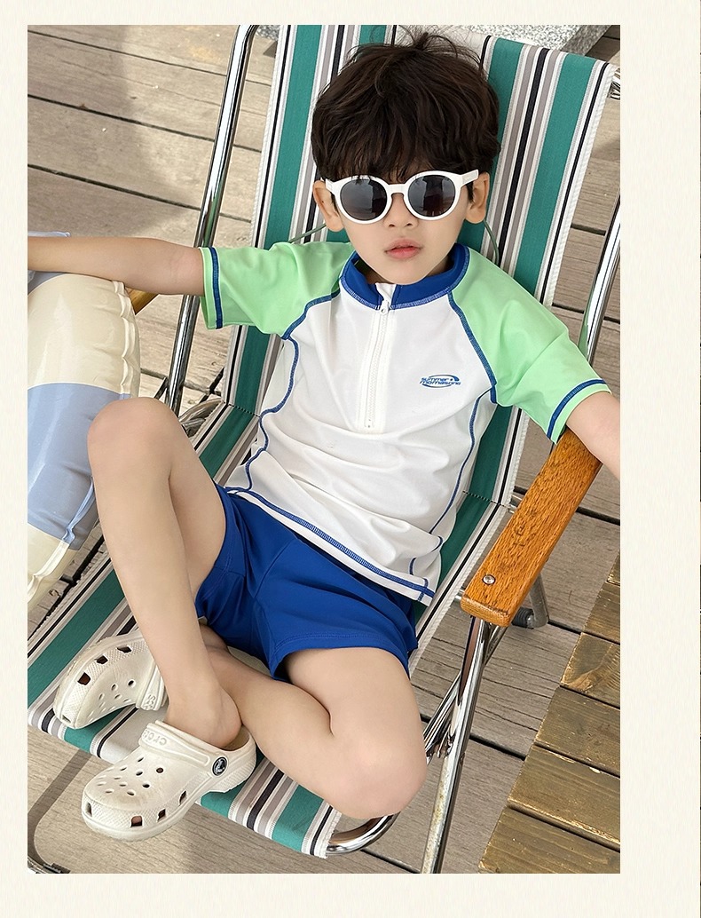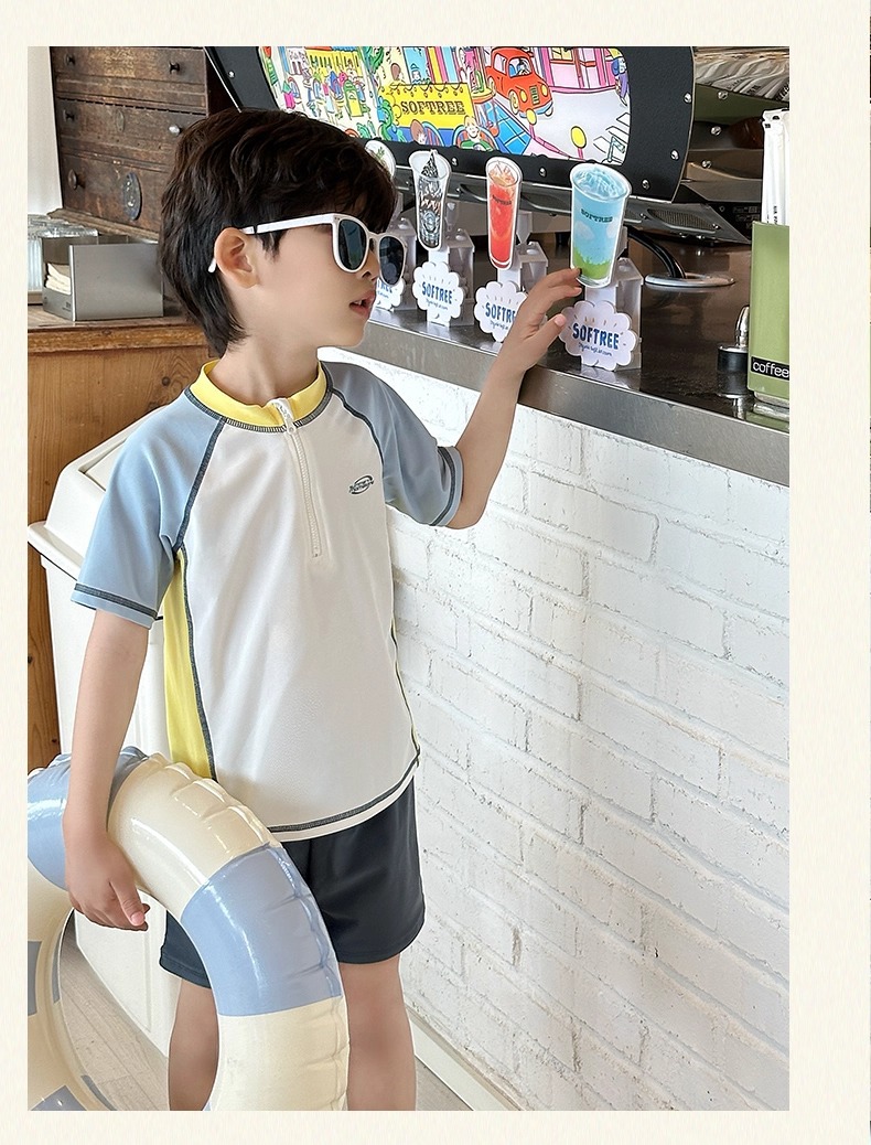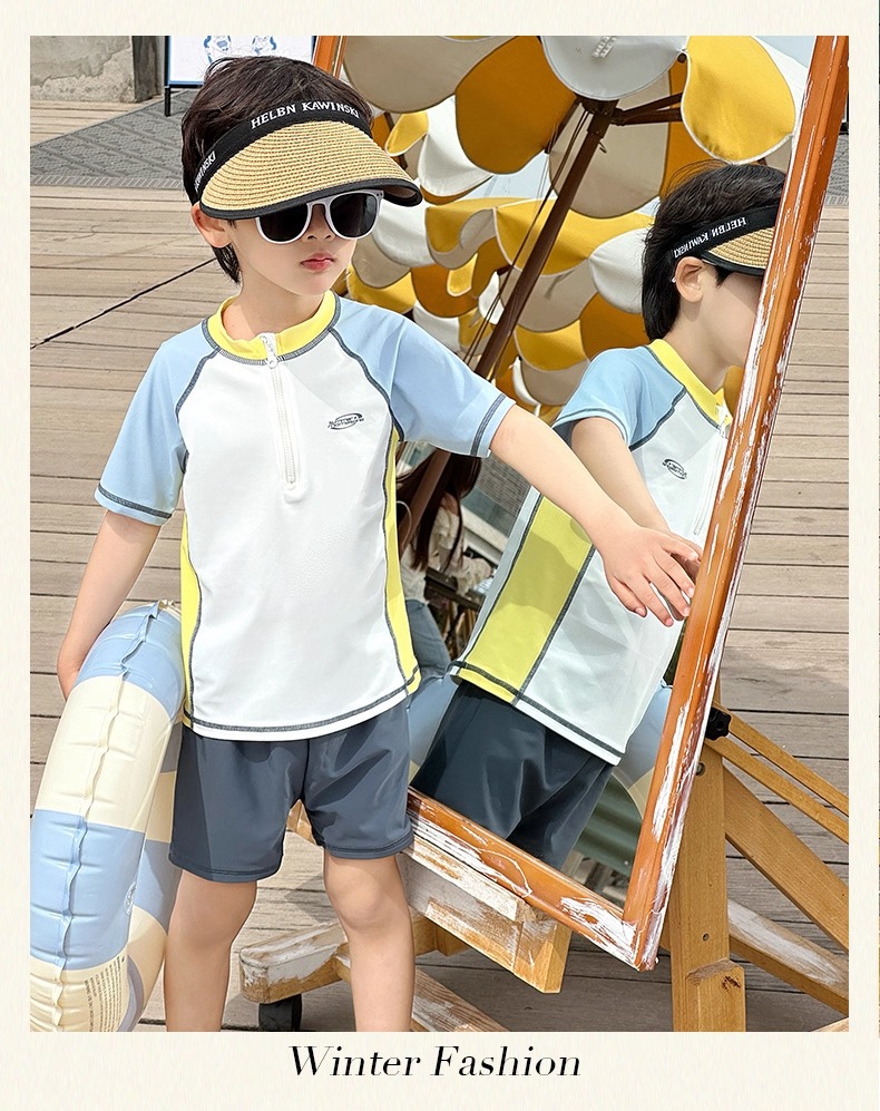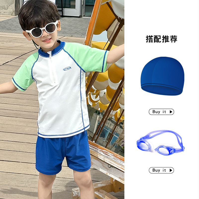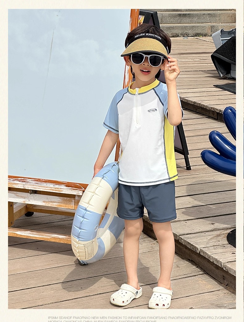 소년 스플릿 수영복 2025 새로운 반팔 자외선 차단제 속건성 수영복 중대형 어린이 여름 아기 해변 수영복스토어 가기