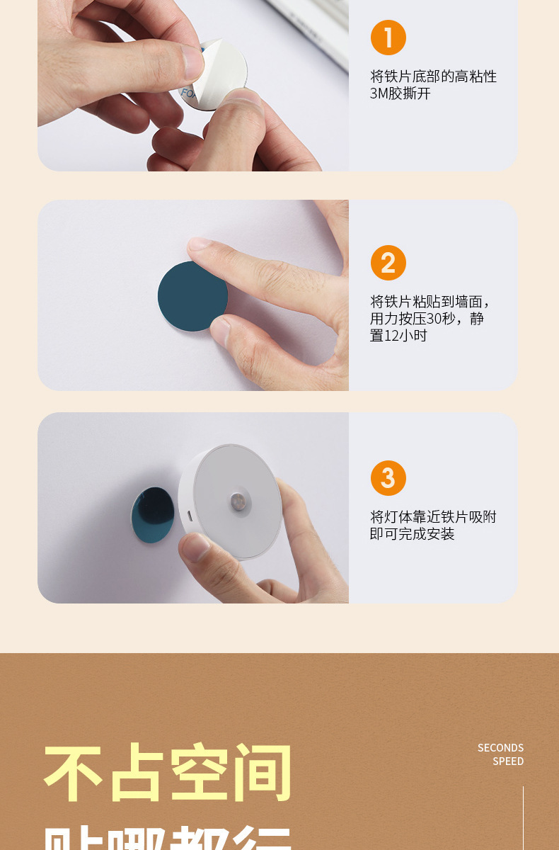 무선 스마트 인체 센서 램프 야간 가정용 통로 캐비닛 침실 수면 충전 LED 침대 옆 야간 조명
