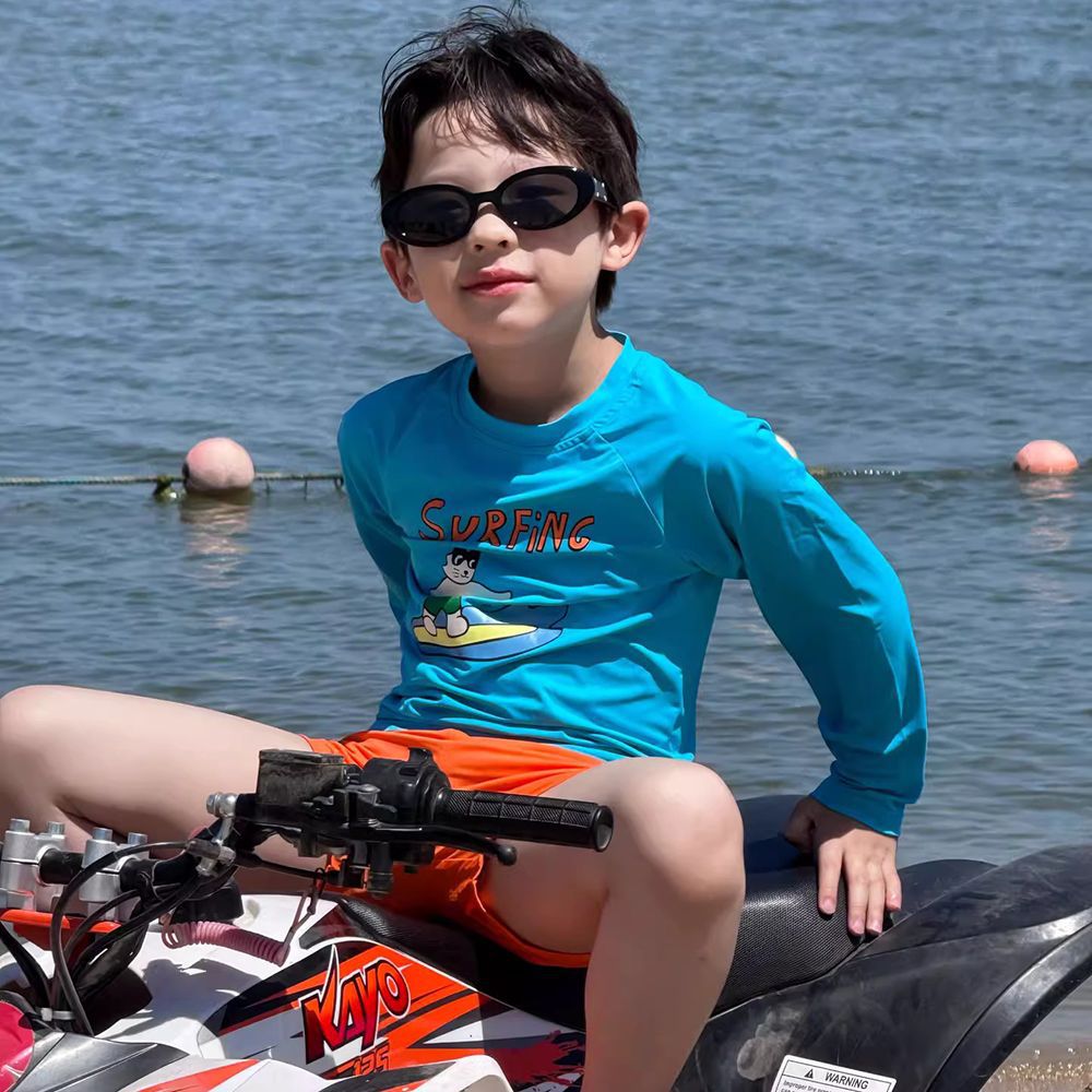 아동 수영복 2025 새로운 스타일 소년 스플릿 속건성 수영 트렁크 수영복 정장 수영복 긴팔 자외선 차단제 투피스 세트스토어 가기