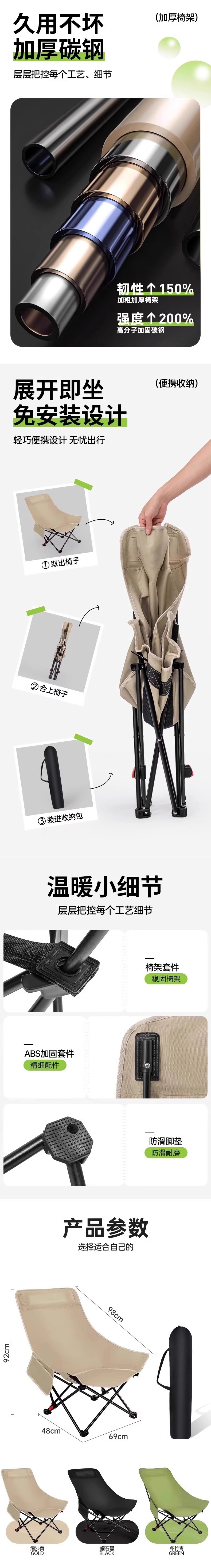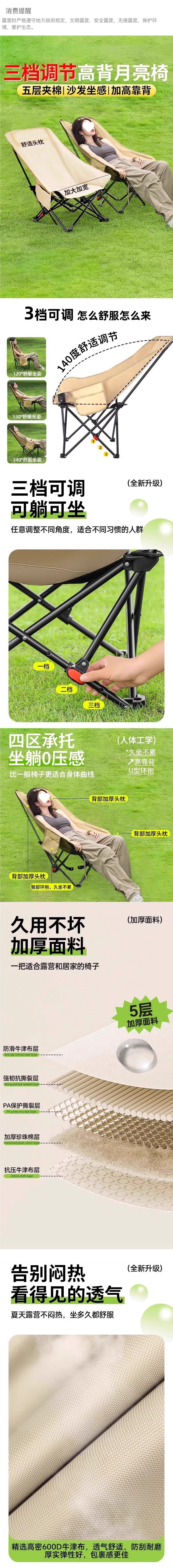 야외 접이식 달 의자 캠핑 강화 조절 가능한 안락 의자 휴대용 해변 낚시 의자 피크닉 의자 안티-스토퍼