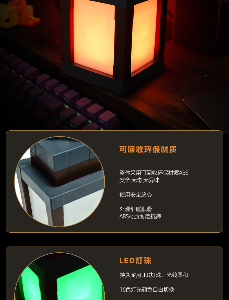 Minecraft 주변기기 야간 조명, 동일한 픽셀 조명, 침대 옆 LED 분위기 조명, 창의적인 랜턴, 충전식 팻 램프