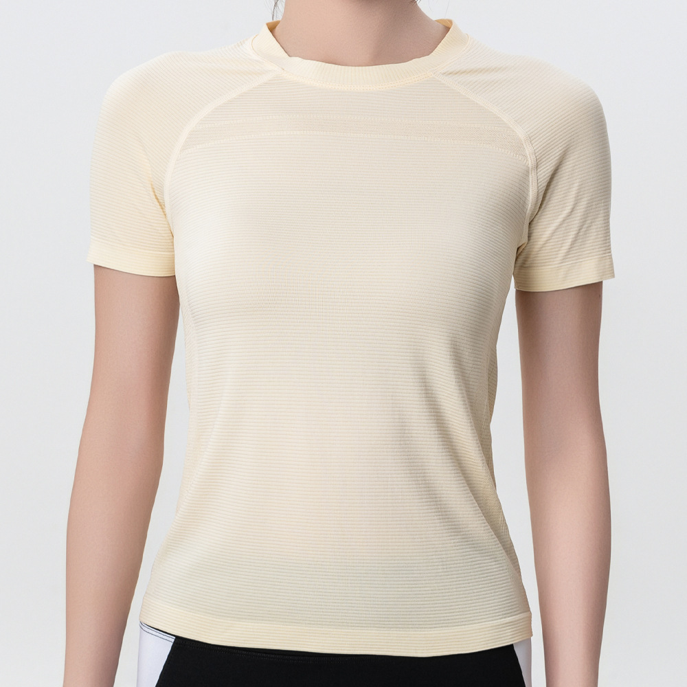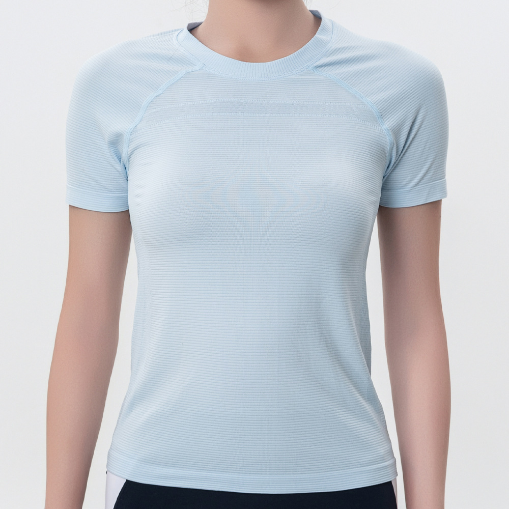가볍고 얇은 자외선 차단제 아이스 실크 탑 라운드 넥 반팔 스포츠 속건 티셔츠 여성용 반팔 스포츠 야외 요가웨어스토어 가기