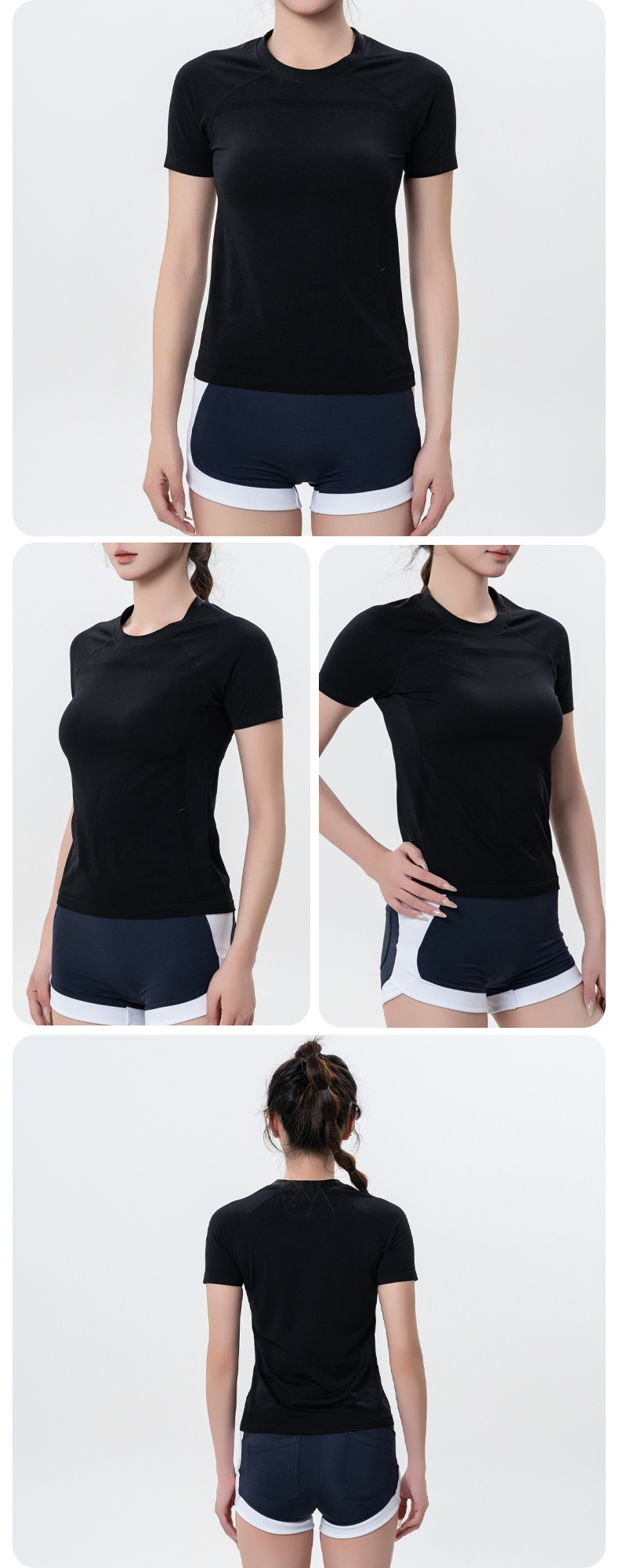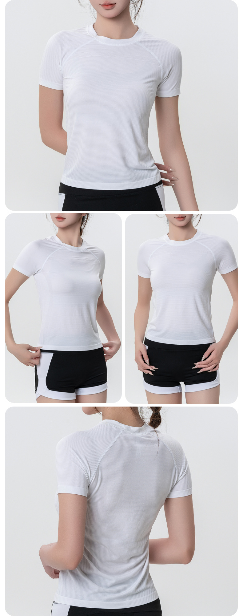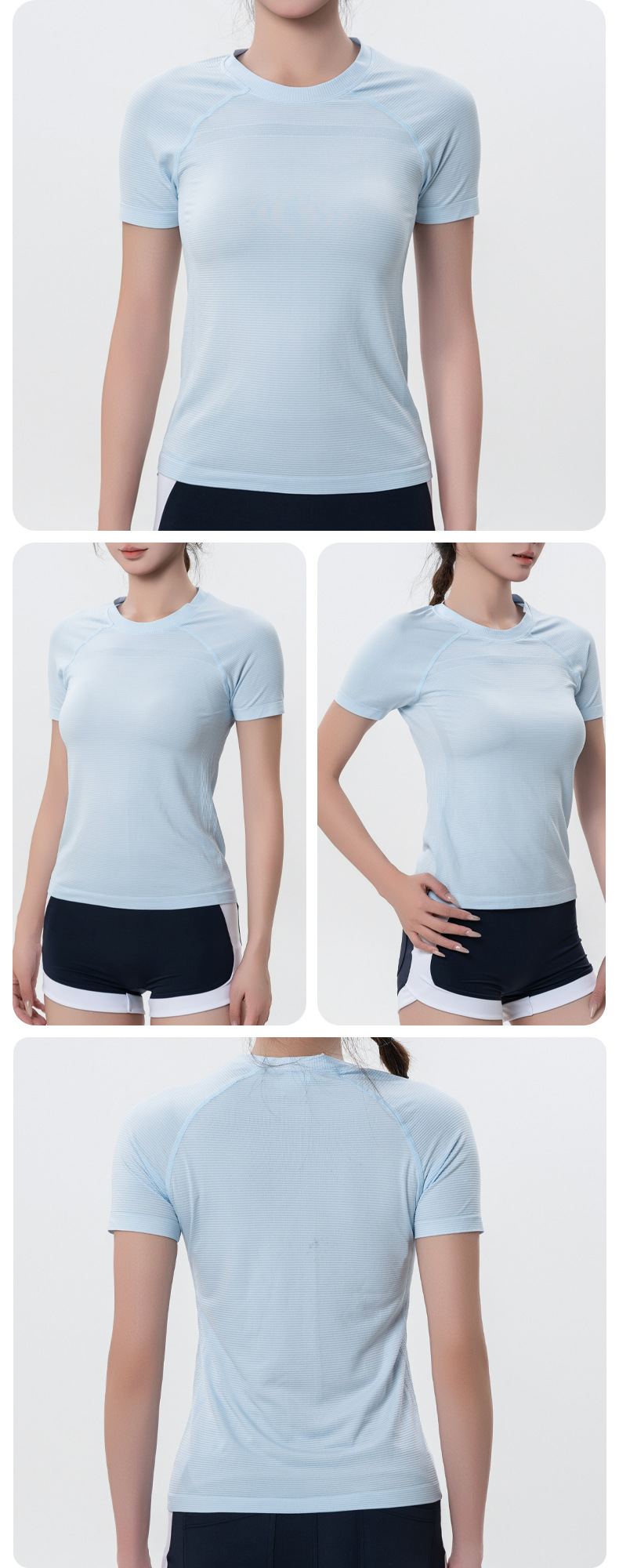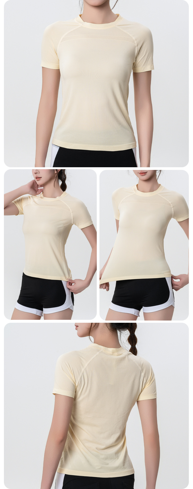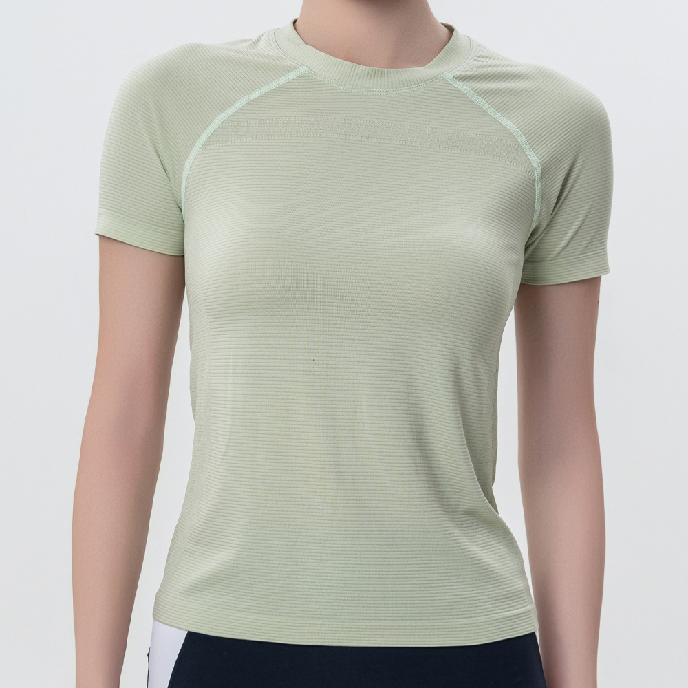 가볍고 얇은 자외선 차단제 아이스 실크 탑 라운드 넥 반팔 스포츠 속건 티셔츠 여성용 반팔 스포츠 야외 요가웨어