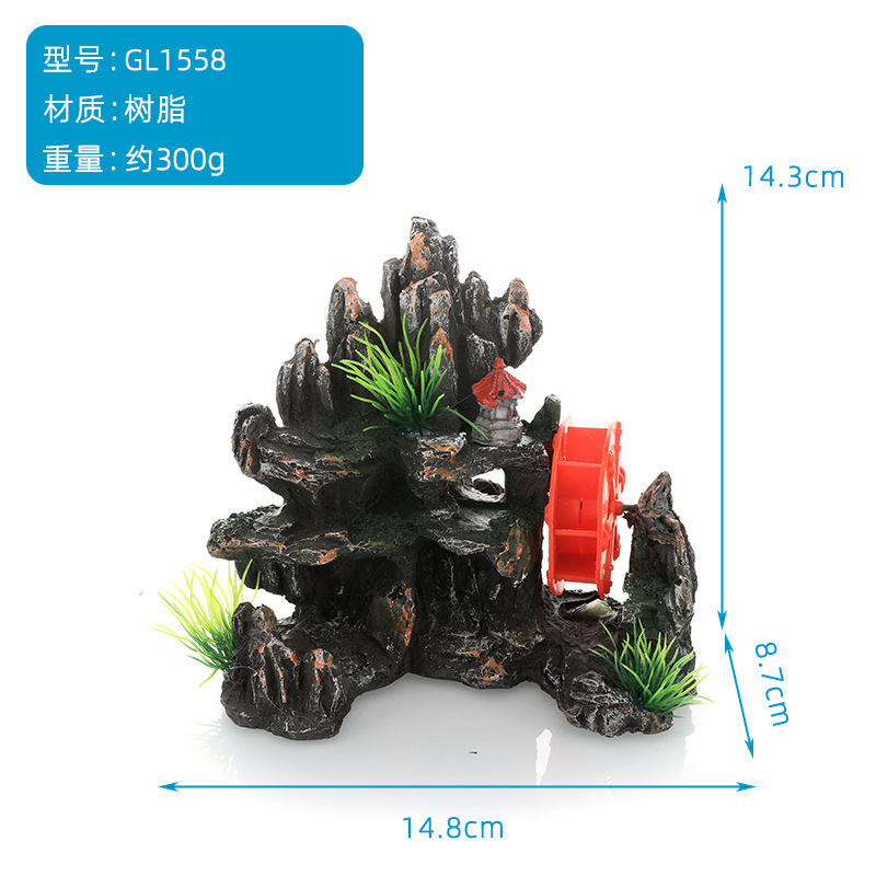 제조 업체 도매 수조 조경 수족관 장식 암석 장식품 산소 워터 펌프 액세서리 물 휠 풍차 휠 장식