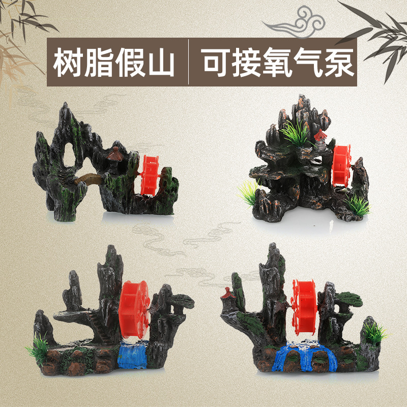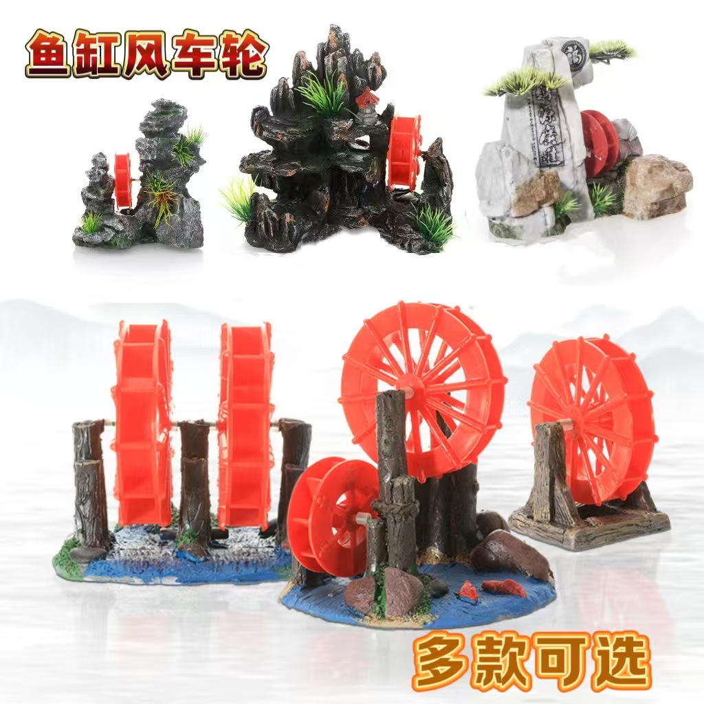 제조 업체 도매 수조 조경 수족관 장식 암석 장식품 산소 워터 펌프 액세서리 물 휠 풍차 휠 장식스토어 가기