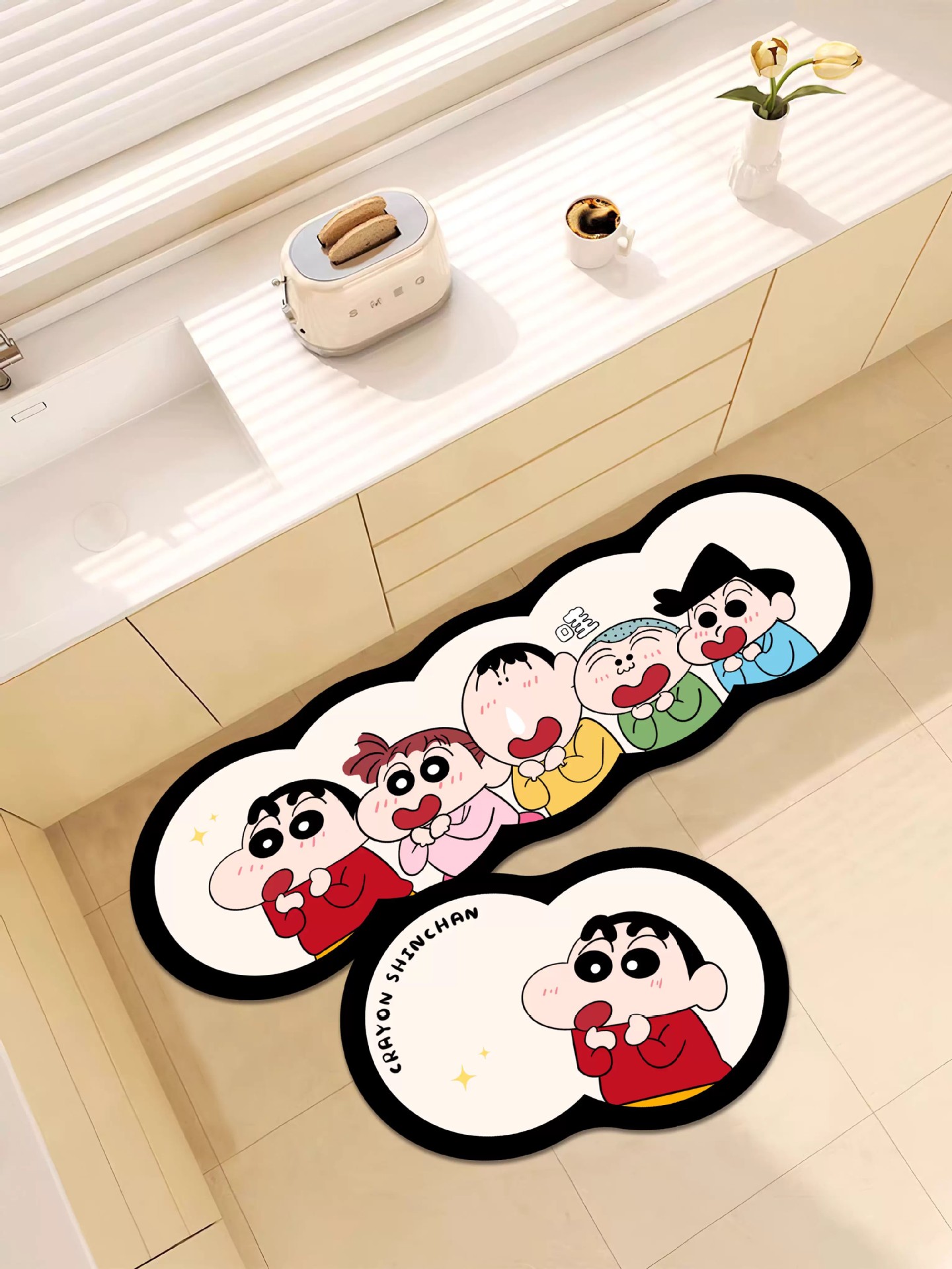카아이 만화 특수 모양의 규조토 진흙 바닥 매트 Xiaoxin 주방 흡수성 물 및 기름 바닥 매트 욕실 발 매트 입구 문 매트스토어 가기