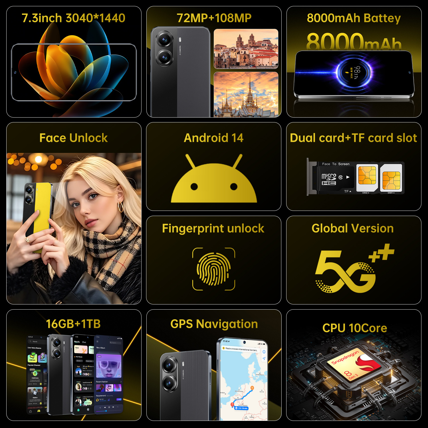 X7 Pro 크로스보더 스마트팩토리 휴대폰 7.1inch 초대형 화면 16+1T 메모리 안드로이드폰, 공장 직판 저가