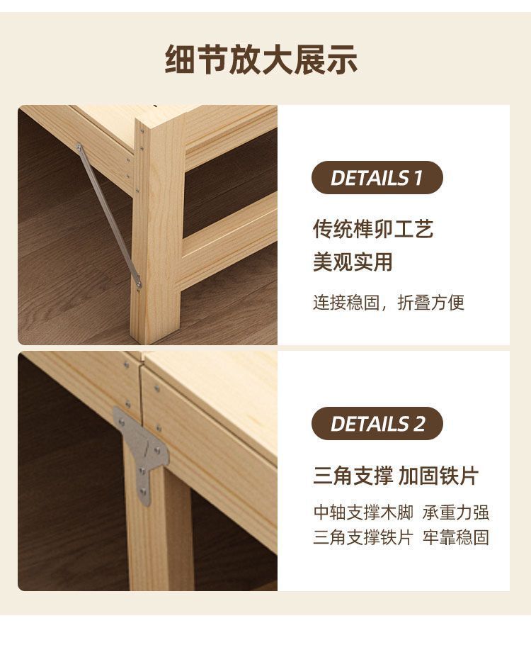 • 폭 80, 길이 196, 높이 40 - 접이식 원목 침대