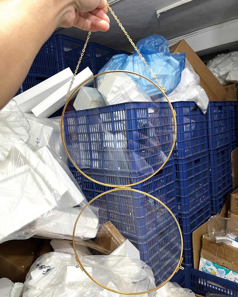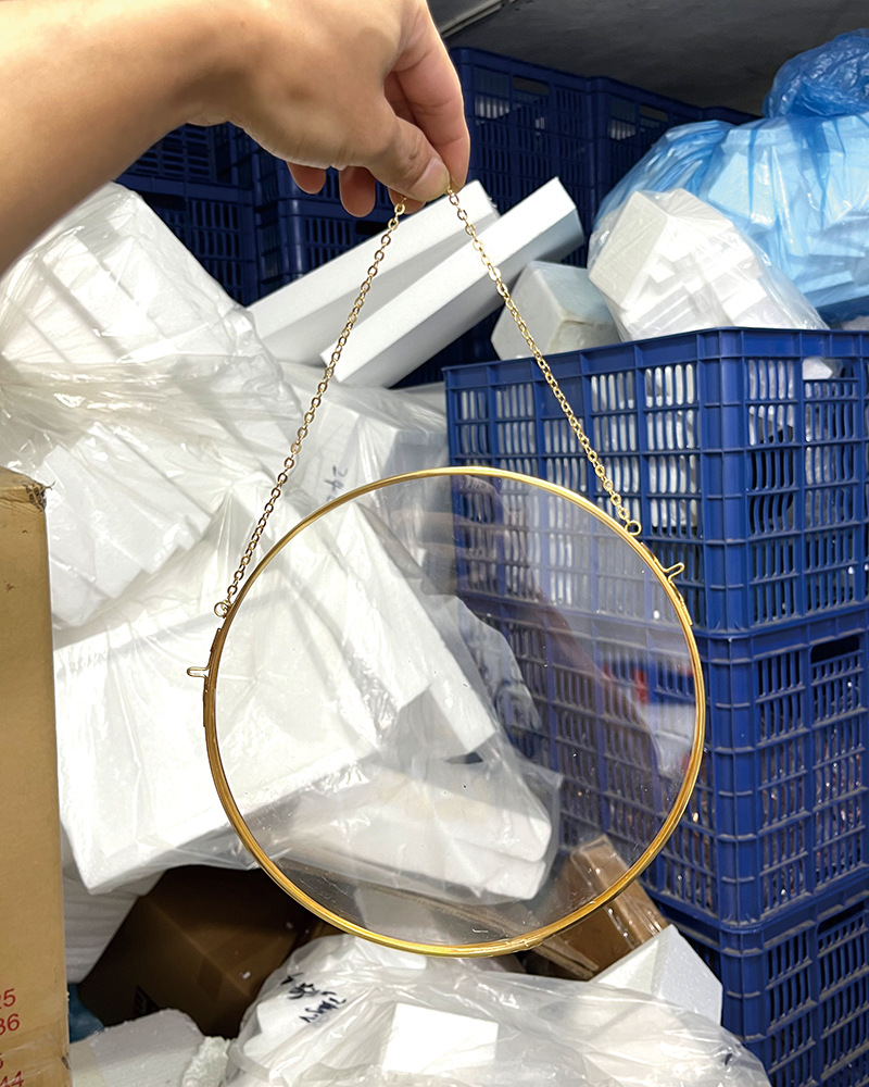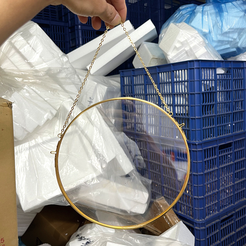 라운드 황동 교수형 사진 프레임 양각 양면 유리 프레임 투명 DIY 빈티지 아트웍 벽걸이 형 사진 프레임