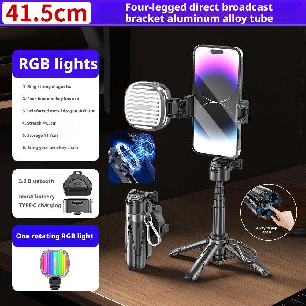 • P15mini 자석 부착형 단일 RGB 조명 - 모델 1 블랙 [RGB 조명 1개 + 41.5cm 알루미늄 합금 셀카봉 + 블루투스 리모컨]