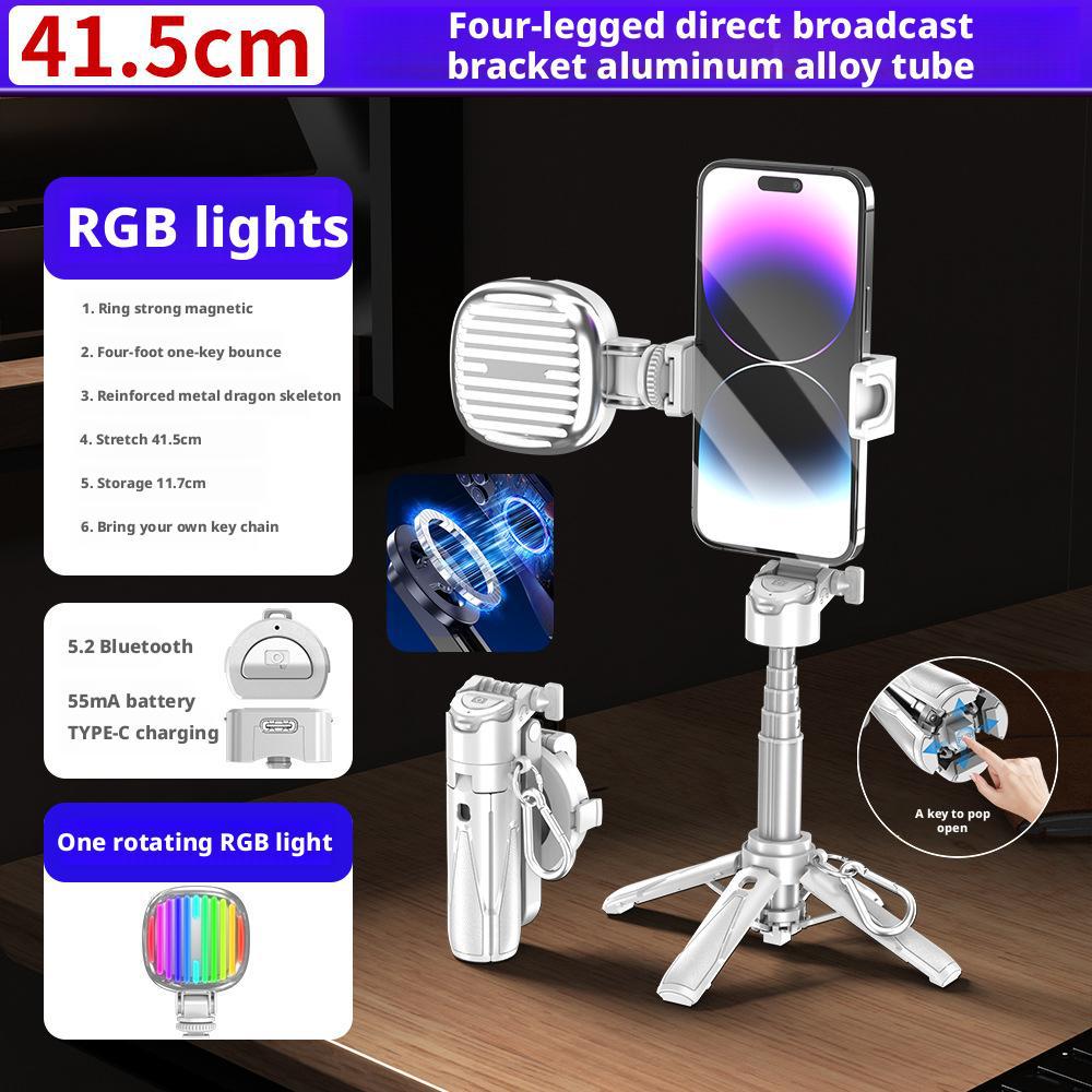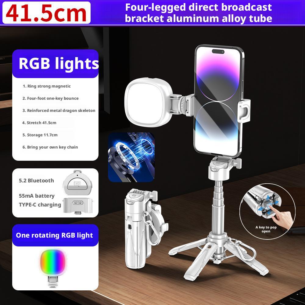 • P15mini 자석 부착형 단일 RGB 조명 - 모델 1 화이트 [RGB 조명 1개 + 41.5cm 알루미늄 합금 셀카봉 + 블루투스 리모컨]